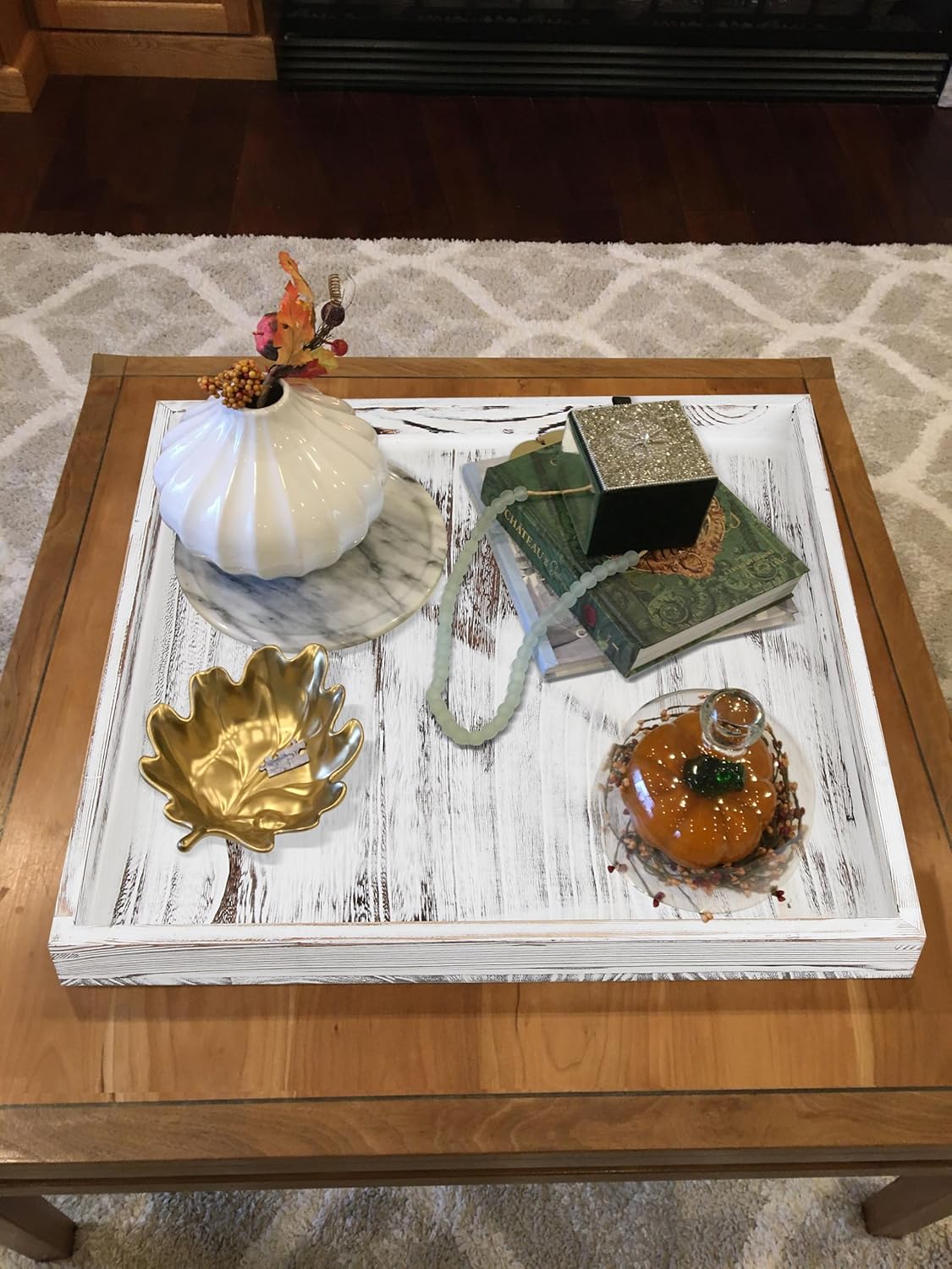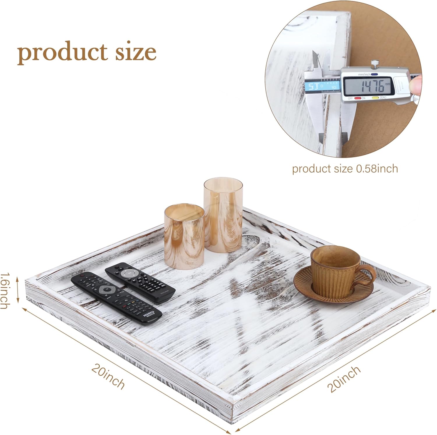 Extra Large Square Ottoman Table Tray 20" - Rustic Wooden Serving Tray for Farmhouse Decorative Oversized Coffee Table Trays Living Room Kitchen Counter Breakfast White