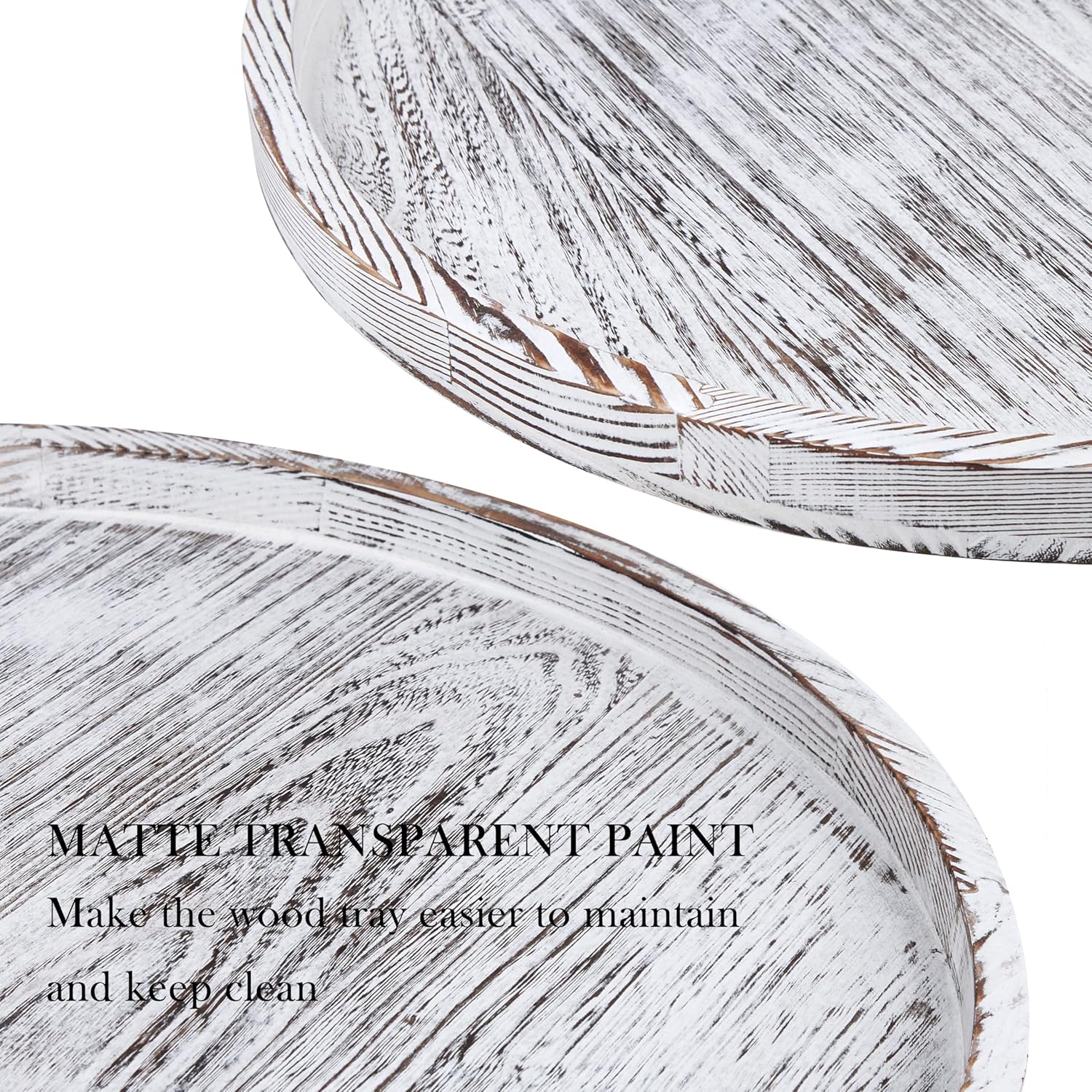 Extra Large Round Ottoman Table Tray 20" - Rustic Wooden Serving Tray for Farmhouse Decorative Oversized Coffee Table Trays Living Room Kitchen Counter Breakfast White