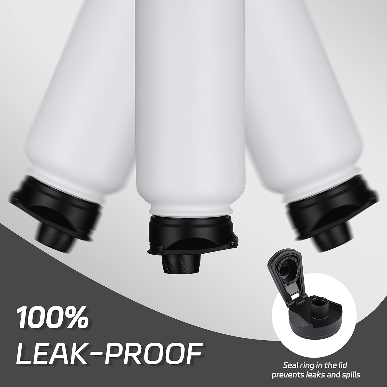 HASLE OUTFITTERS 32 oz Insulated Water Bottle Stainless Steel Double Walled Vacuum Sports Water Bottle with 2 Lids (Straw and Spout Lid) for Gym Camping Hiking(White,1)
