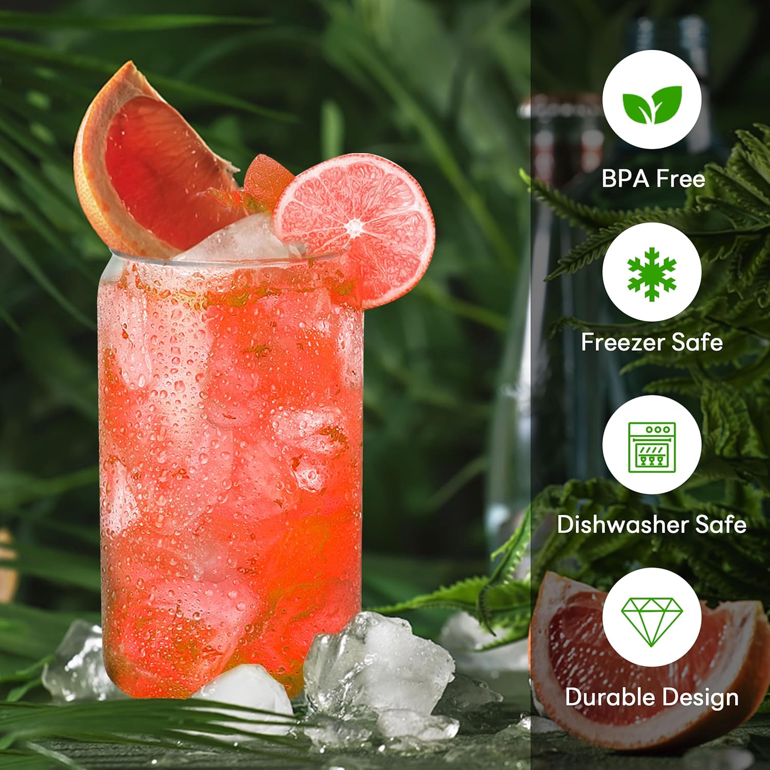 Joyclub Glass Cups with Bamboo Lids and Straws 12 Set 16 oz Reusable Iced Coffee Cup Beer Can Drinking Jars for Smoothie Whiskey Boba Soda Tea Gift