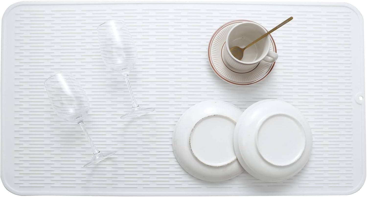 Silicone Dish Drying Mat for Multiple Usage,Easy clean,Eco-friendly,Heat-resistant Silicone Mat for Kitchen Counter or Sink,Refrigerator or Drawer Liner White 4XL 32 inches x 18 inches