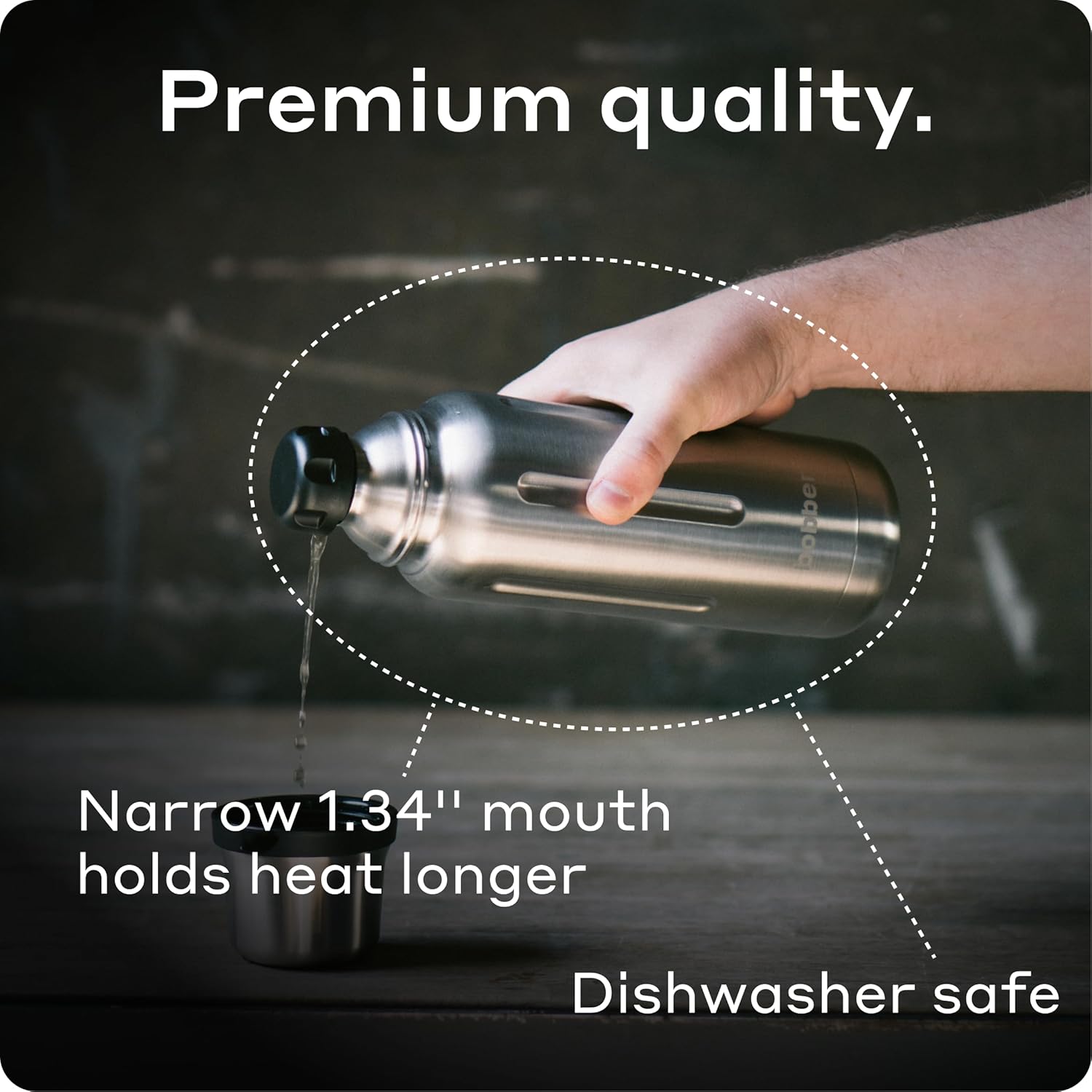 - SAFETY FIRST: Crafted from 18/8 high-grade stainless steel, our thermos flask for hot beverages ensures your drinks remain free from harmful chemicals. BPA-free, food-grade steel, plastic, and silicone components guarantee a safe drinking experience. Plus, the stopper features an extra metal layer to prevent odor absorption