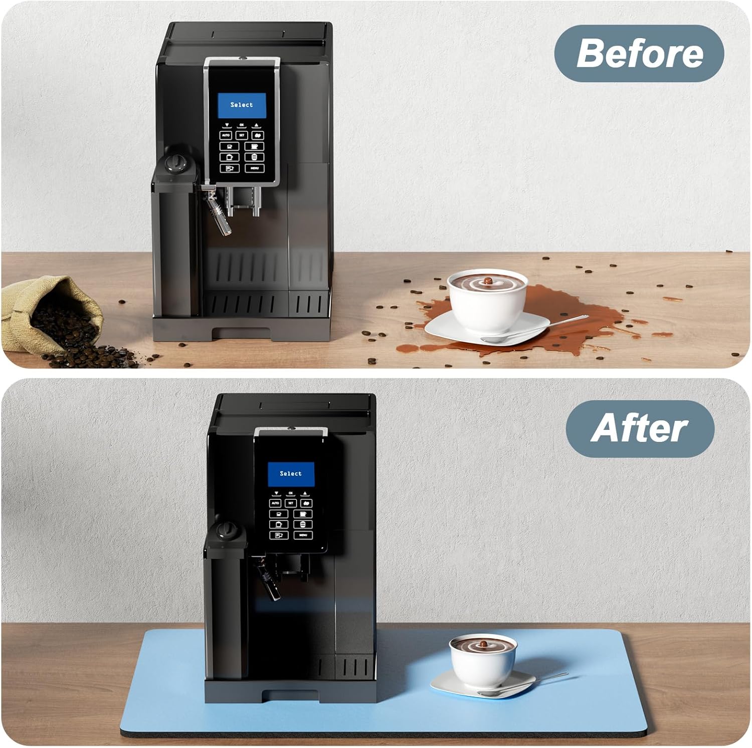 - Easy to Clean: The coffee bar mats for countertop can be cleaned with hand or machine to remove stains, up to 91% porosity material allows coffee bar mats to dry quickly without a machine