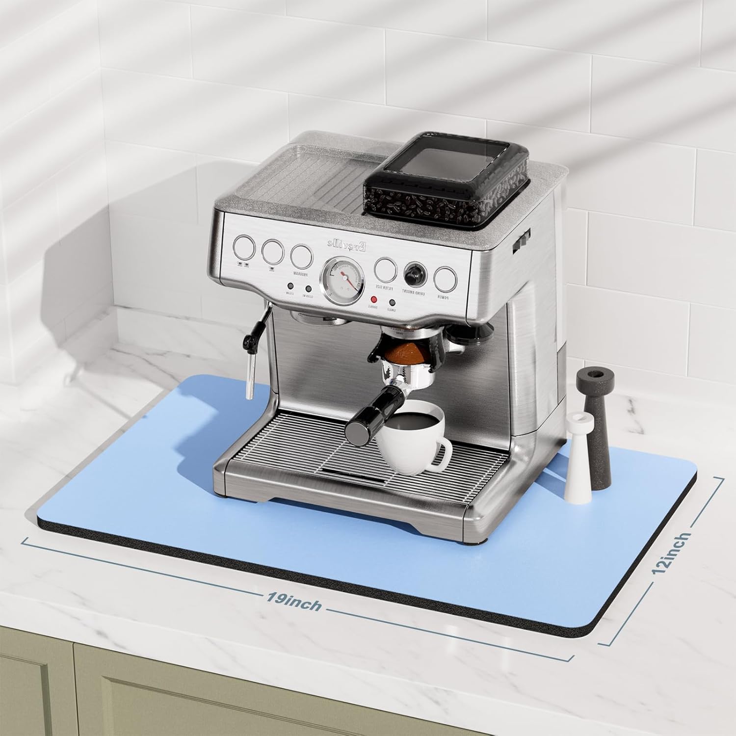 - Versatile Size: Coffee pad for espresso machine accessories measures 12" X 19" fits most counters. Thickened design 0.16 inch thick, which can also be used for any small home household appliances indoors