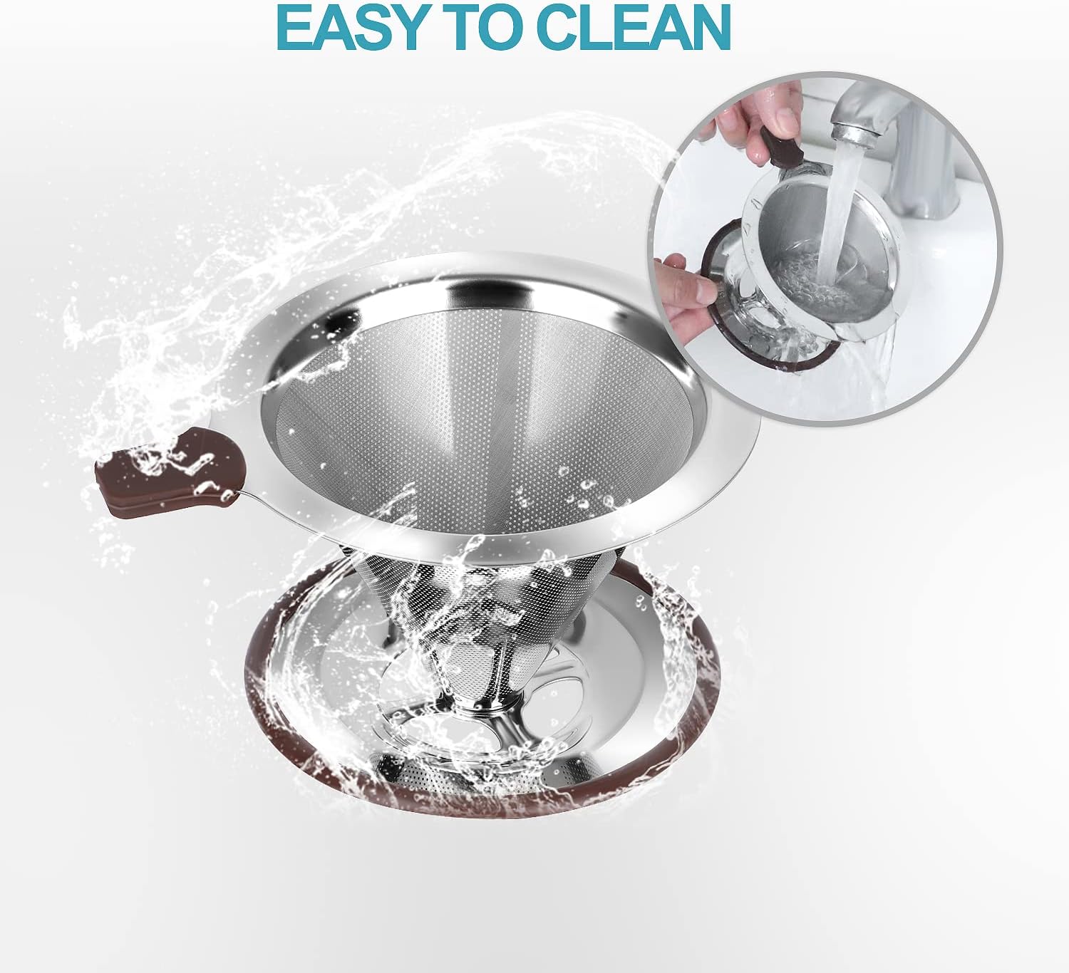 Pour Over Coffee Dripper, Reusable Paperless Coffee Filter,Professional Stainless Steel Drip Cone Brew Coffee Strainer,Upgraded Double Micro Mesh Filter with Cup Stand,1-4 Cup