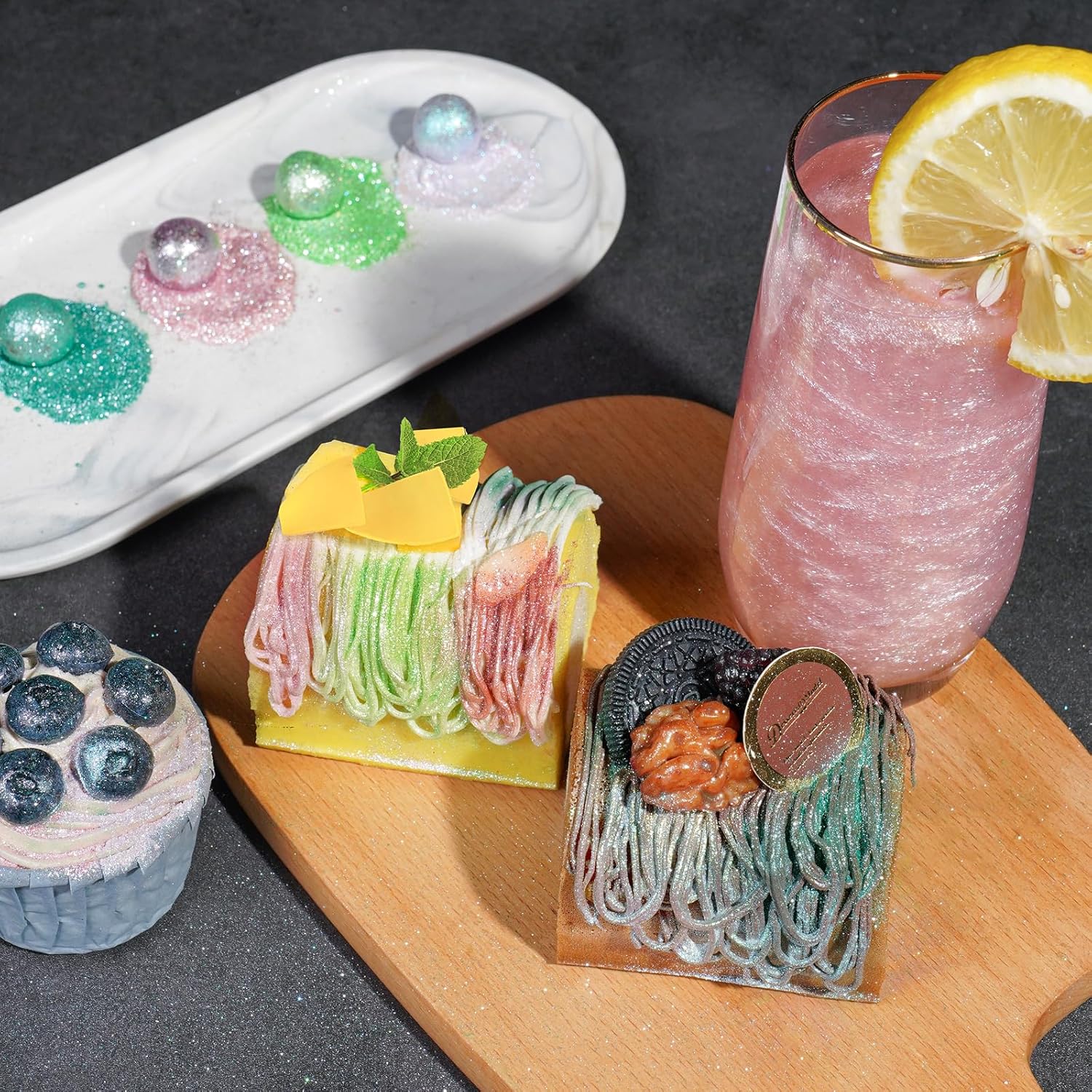 - ✔️【Easy to Use】Specially developed for food decoration and craft industries, this luster dust produces realistic looks by highly pigmented colors with a metallic finish. The pretty fine grain is more convenient for painting. To add glimmer and sparkle to your creations, simply sprinkle or dry brush the luster glitters on them. This product adheres very well to both wet and dry mediums. Attention: Seal and store glitter powder in a cool and dry place after use. Do not expose to excessive heat.