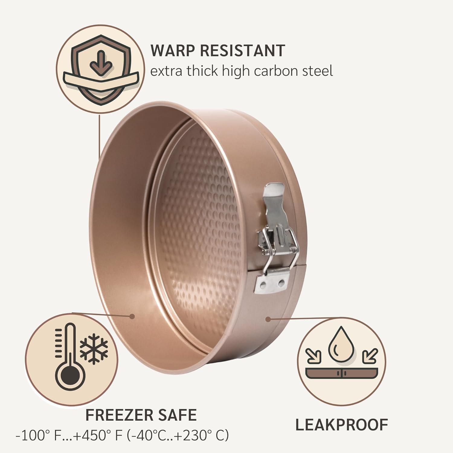 - 🎁 Perfect Gift for Bakers – these non toxic, nonstick springform pans are the perfect gift for bakers. HAPPIELS elegant champagne gold cake pans not only look stunning but bake like a dream!