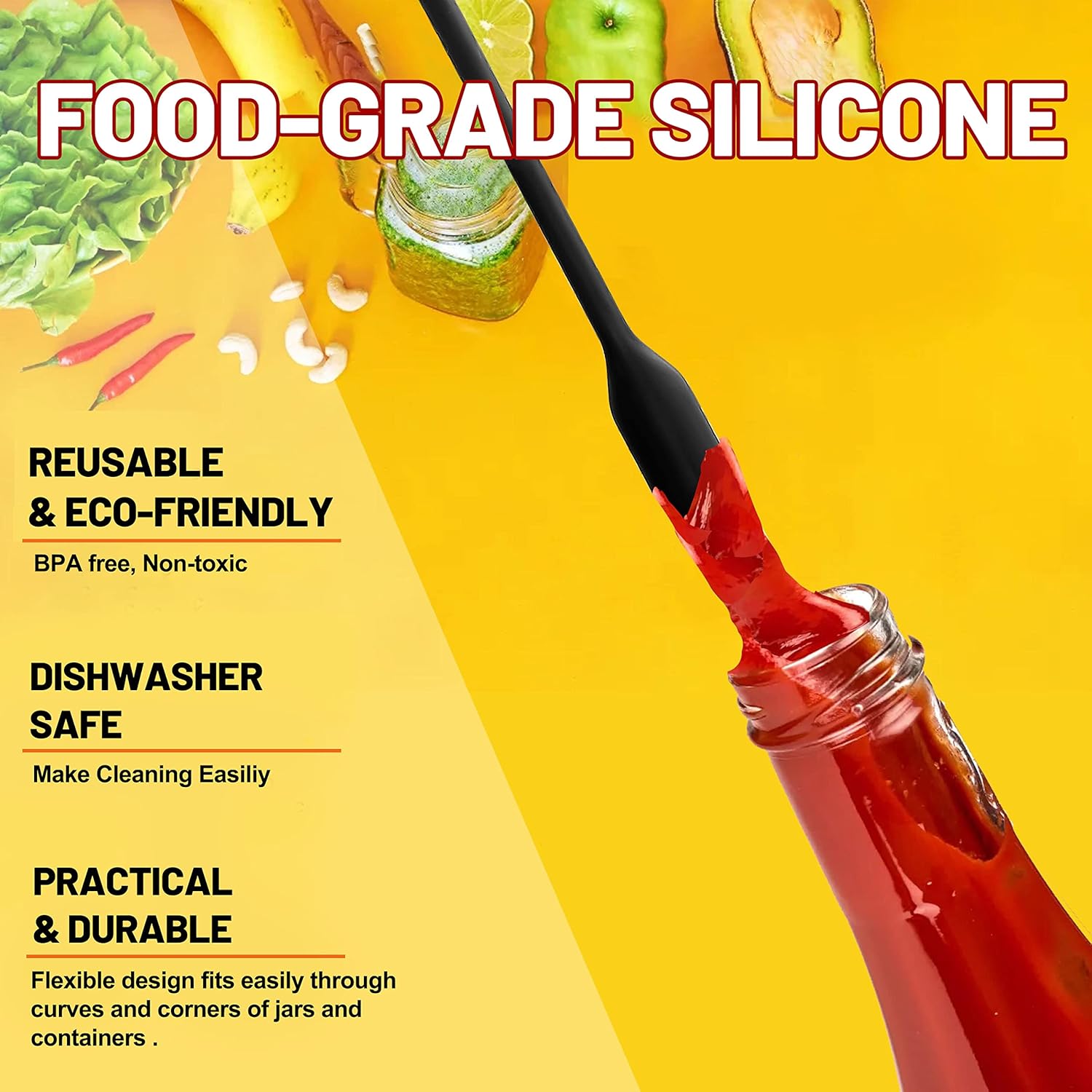 - WIDELY USED MINI SPATULAS - Anaeat flexible mini spatula work well from the small jar to the large mixing bowl in your kitchen, perfect for stirring, scraping, and folding a wide variety of foods, also can be used to mix makeup or paints. Fit well with various containers of cosmetics, mustard jar, lotion, lip gloss, shampoo, conditioner, nail polish, peanut butter, ketchup, etc. Best choice for kitchen and beauty product!