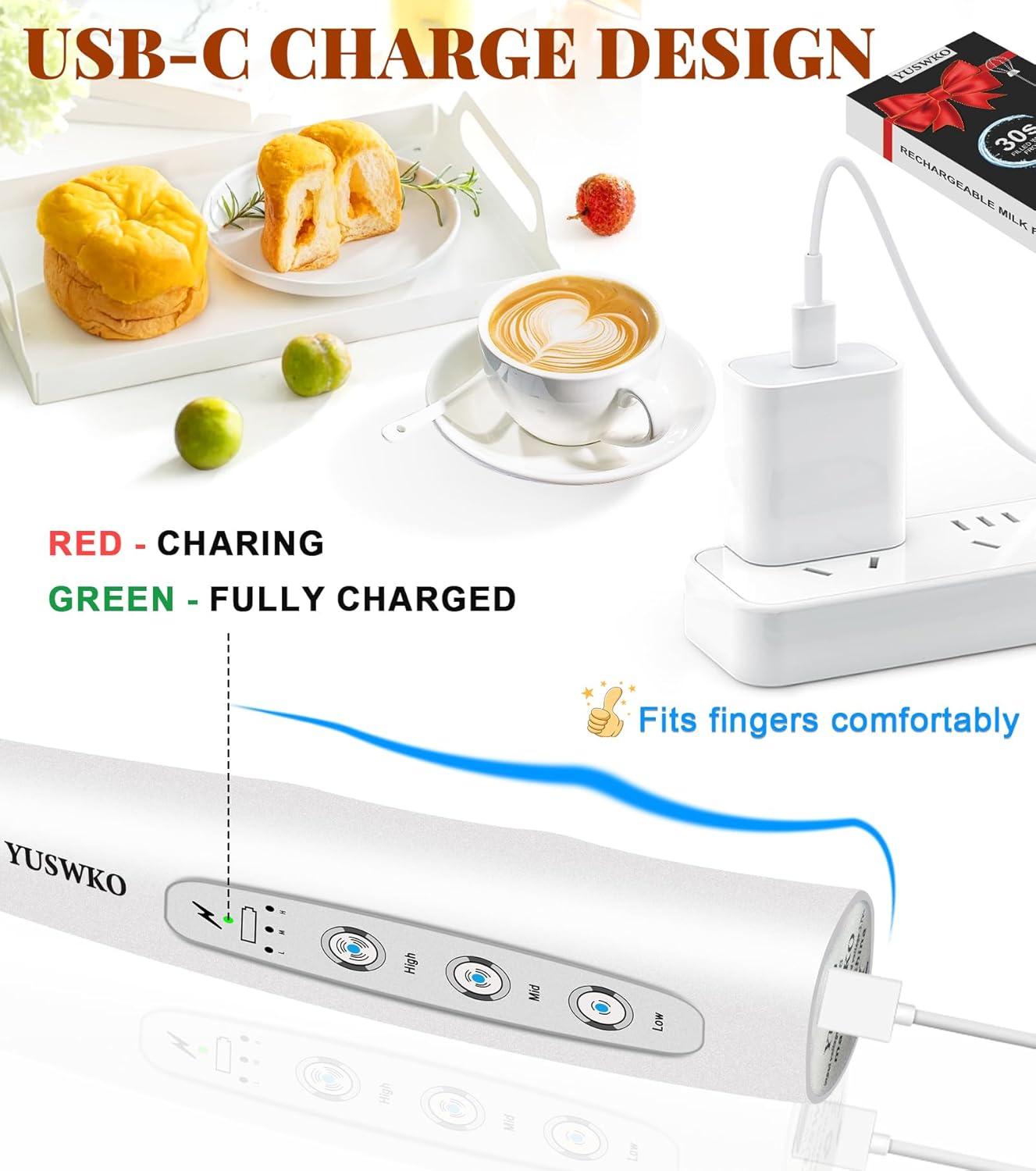 YUSWKO Milk Frother Handheld for Coffee, Rechargeable Drink Mixer with 3 Heads 3 Speeds Electric Coffee Frother Whisk, Gift for Many Occasions and Festival