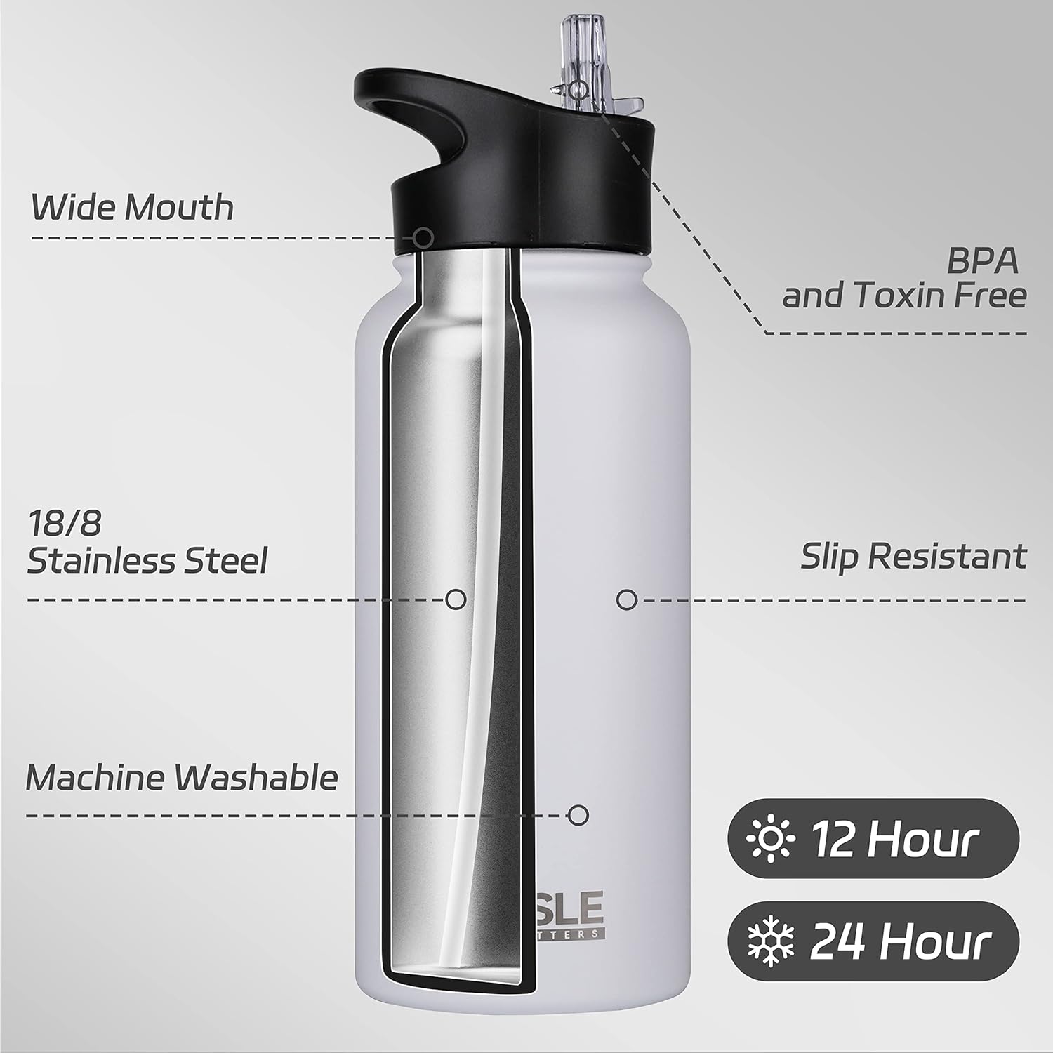 - 【DOUBLE WALL VACUUM INSULATION】Our water bottles with straw are constructed with double wall vacuum insulated technology, keeps beverages Cold up to 24 hours and Hot up to 12 hours. Made of non-toxic BPA-free plastics & durable food-grade stainless steel. The anti-slip layer ensures you hang on to your bottle during the toughest activities.