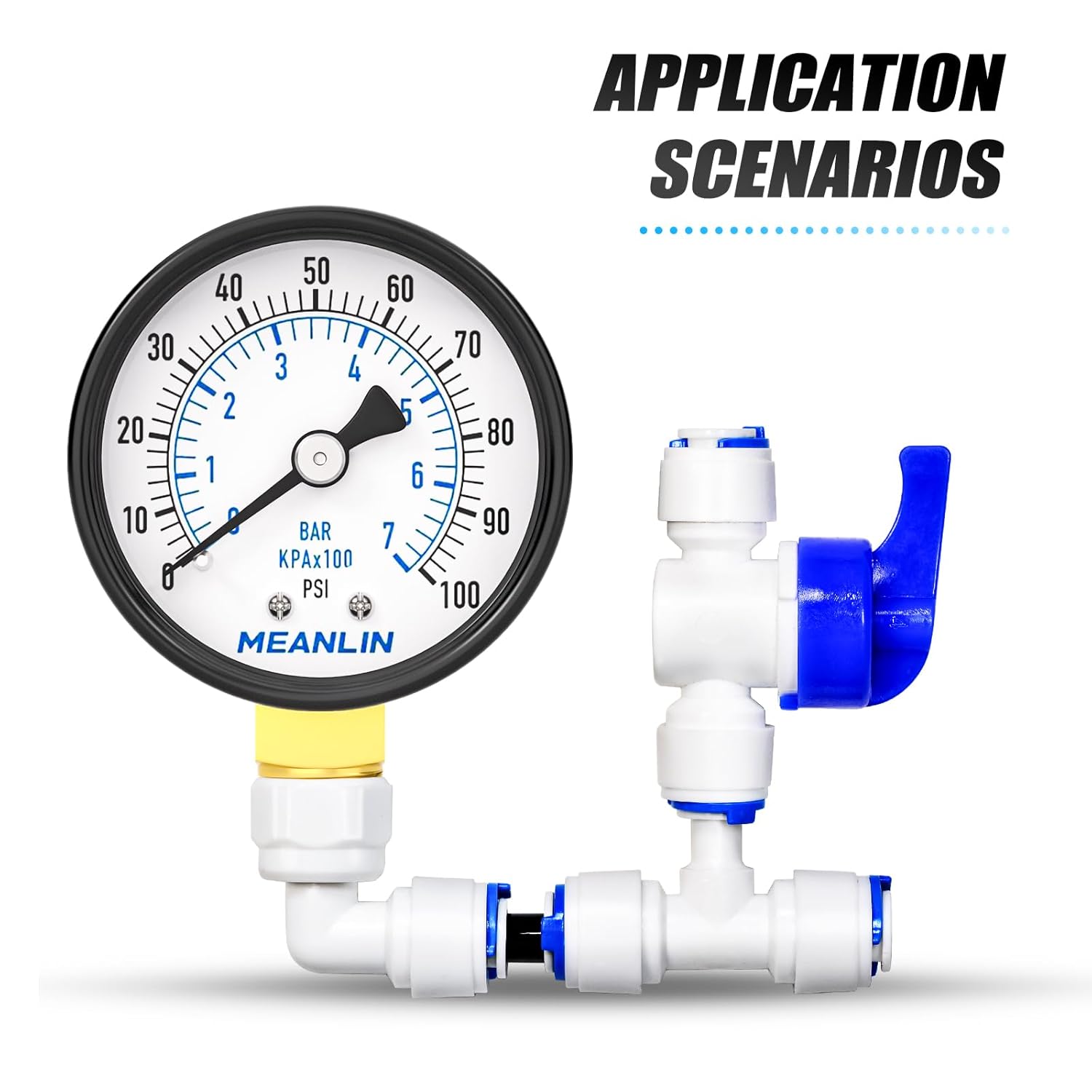 MEANLIN MEASURE 0-100Psi Well Pump Pressure Gauge 1/4" NPT 2" FACE DIAL for Well Pump Water Tire Water Pressure Tester Lower Mount, with Teflon Tape
