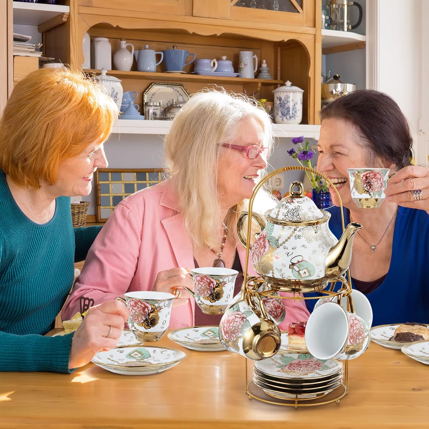- Quality Porcelain Material: the tea party set for adults is mainly made of quality porcelain materials, which ensures that it is durable and long lasting to use safely; The European style design with exquisite patterns and shining gold trim are exquisite and elegant, making it a nice addition to any home decoration