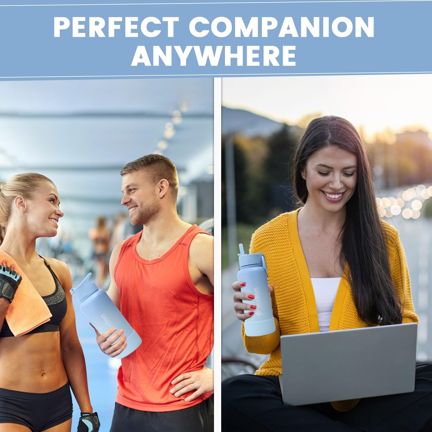 - ✅ LIDS & INFUSER/STRAINER- Lexlion water bottle 32 oz comes W/3 LIDS! a spout lid, a flip lid & and a third lid which is straw lid, 100% leak-proof & dishwasher safe. It includes a newly designed 2-piece strainer stainless steel, a very convenient filter to make loose tea leaves, cold coffee brews, herbs, or fruit-infused water. Add them to the filter basket, close it & clip in the tea water bottle infuser with water. If an infuser is not needed, just remove it.