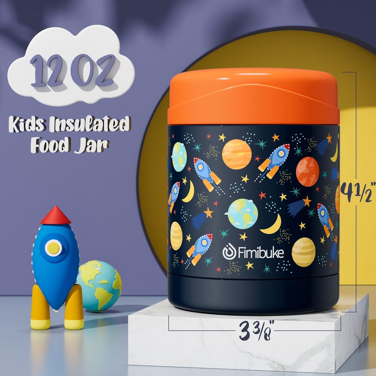 Fimibuke Insulated Kids Food Jar, 12 OZ Bpa Free Wide Mouth Stainless Steel Vacuum Thermos for Hot Cold Food for School Travel Leakproof Toddler Boy Girl Lunch Container Snack Cup for Fruits Veg Soup