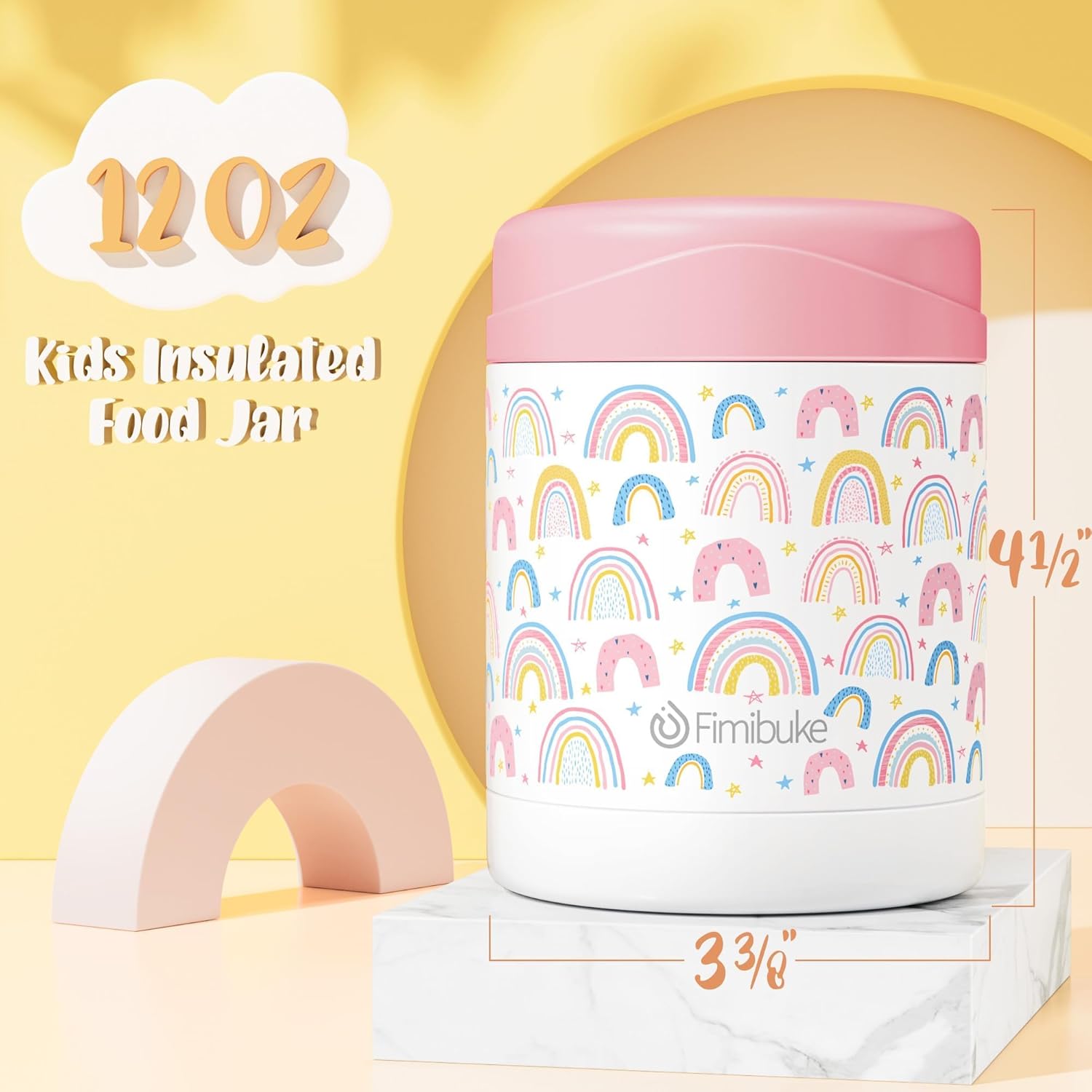 Fimibuke Insulated Kids Food Jar, 12 OZ BPA FREE Wide Mouth Stainless Steel Vacuum Thermos for Hot Cold Food for School Travel Leakproof Toddler Boy Girl Lunch Container Snack Cup for Fruits Veg Soup