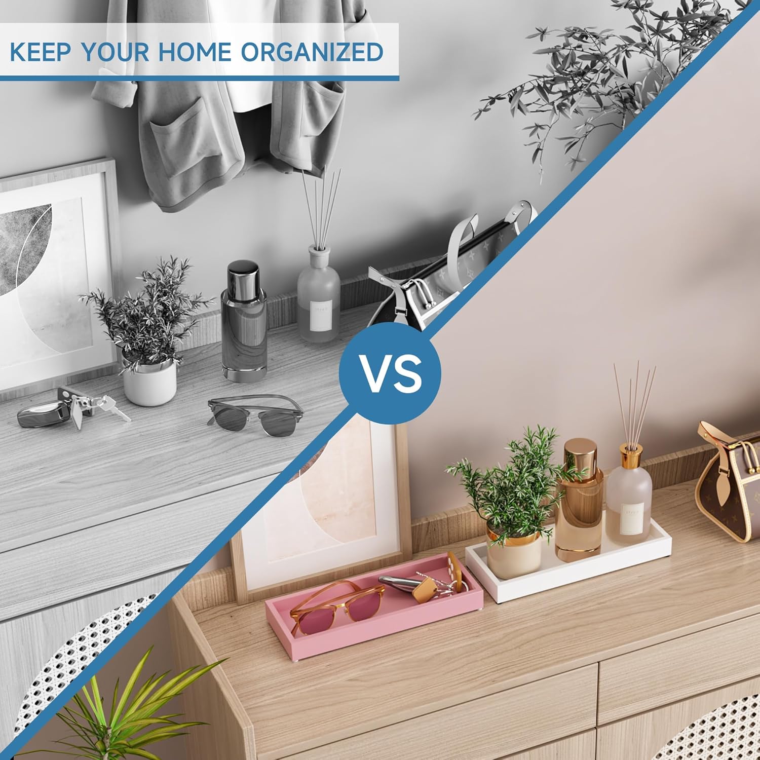 - 【Decorative Tray】Simple design matches almost any home decor, adding a touch of charm to your bathroom counter, bedroom, or living room