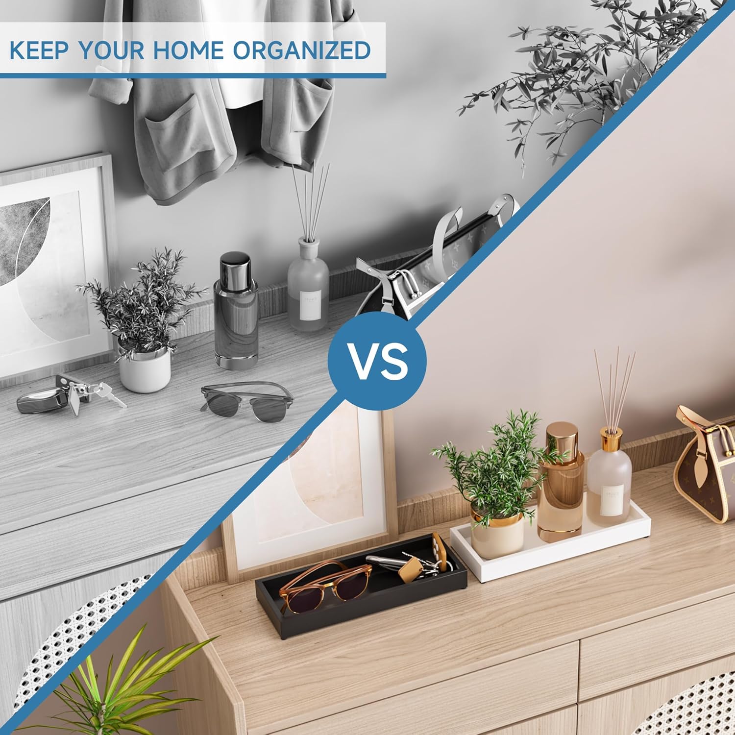 - 【Decorative Tray】Simple design matches almost any home decor, adding a touch of charm to your bathroom counter, bedroom, or living room
