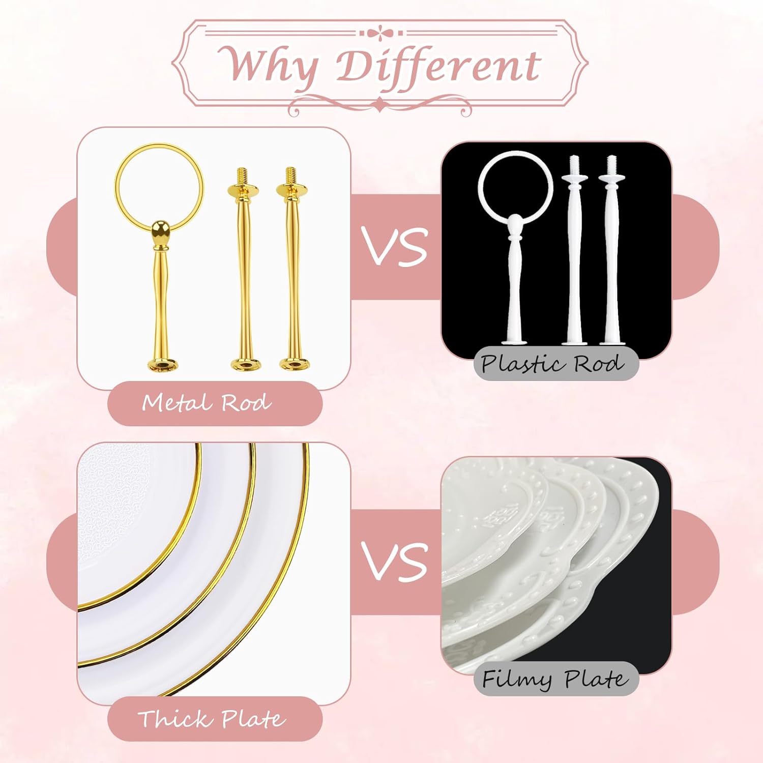 - 【Superior Quality】:This dessert table display set is crafted with thicker food grade plastic plates and reinforced metal rods. It boasts a stylish and durable construction in excellent workmanship that will impress your guests