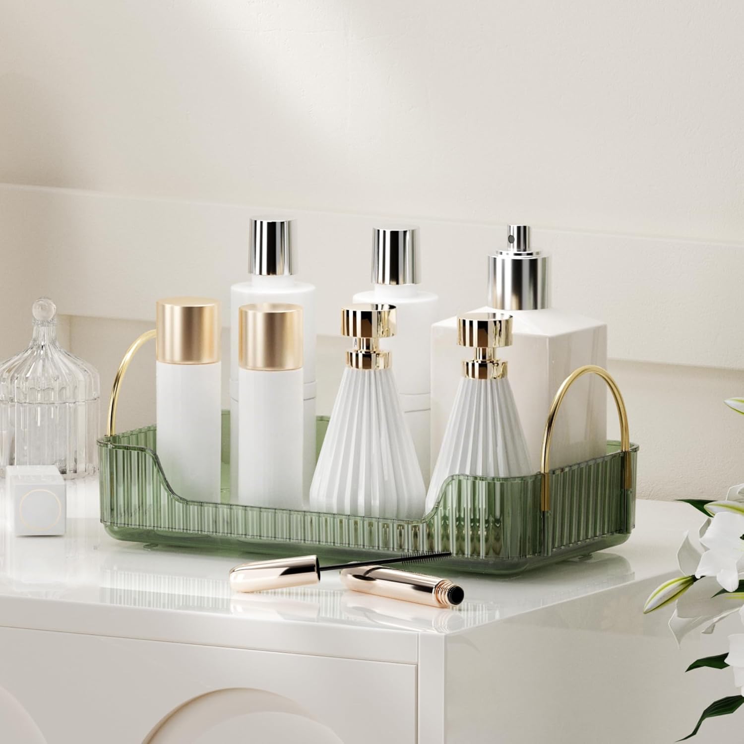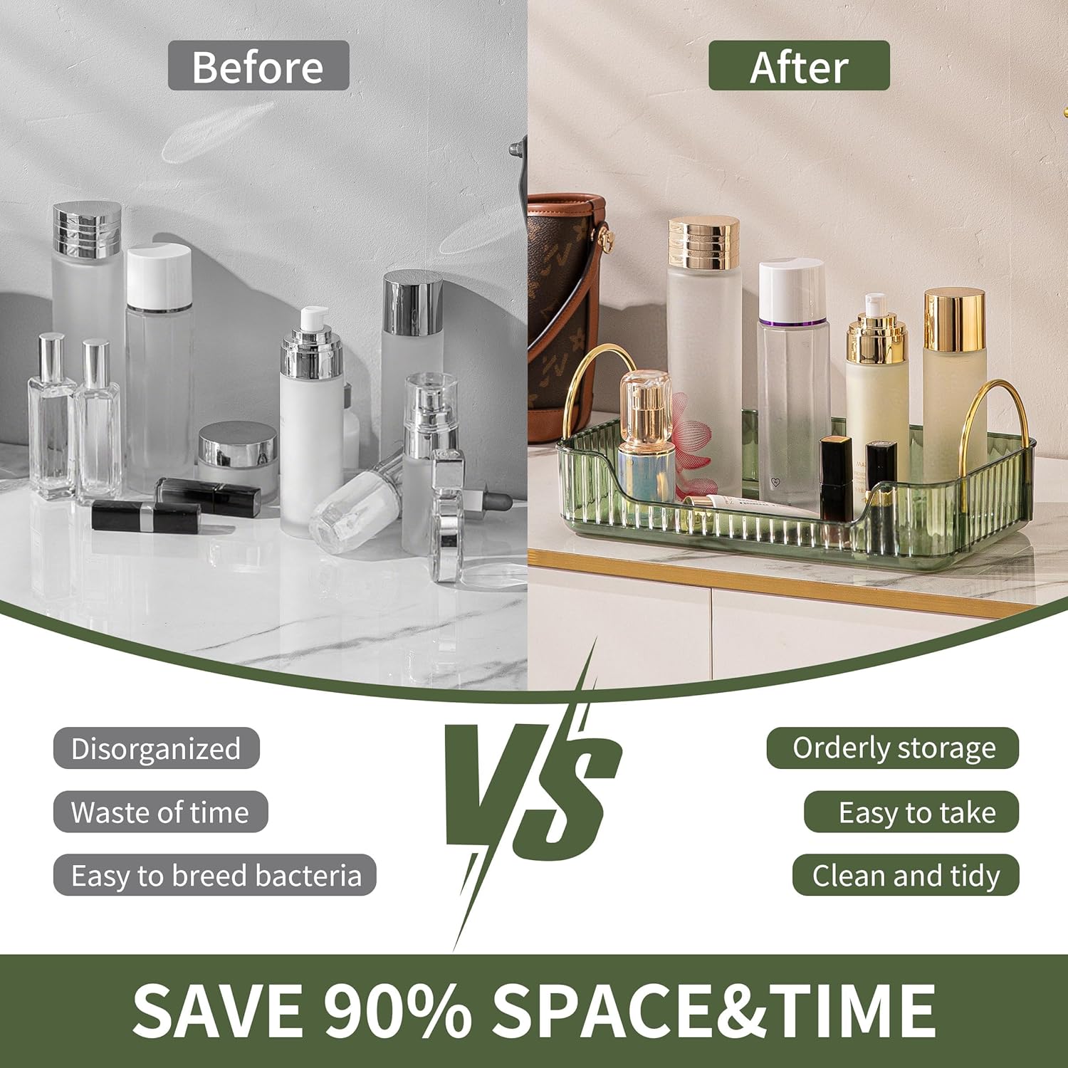 YCIA&DONE Bathroom Organizer Countertop, Makeup Storage, Skincare Cosmetic Tray Shelf, Perfume Holder Rack for Vanity Counter, Large Capacity, Easy to Install, Clean, 1 Tier, Vintage Green