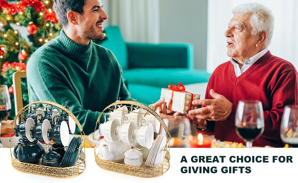- The tea cup and saucer gap is an ideal gift: The gorgeous 22-piece tea set with a beautiful gift box makes it always the best gift for friends, family, tea, or coffee lovers, whether it's a wedding, birthday, family reunion, or other gathering