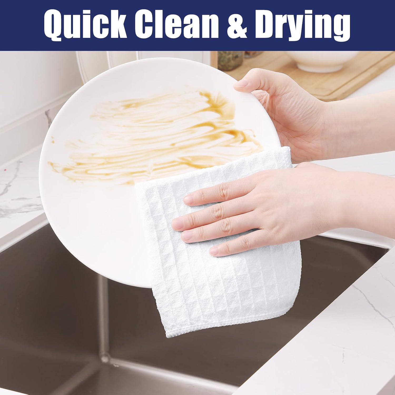 - High Absorbent & Fast Dry: The dish towels with double-sided waffle design, high absorbency, can quickly wipe stains from the surface of the items and fast dry