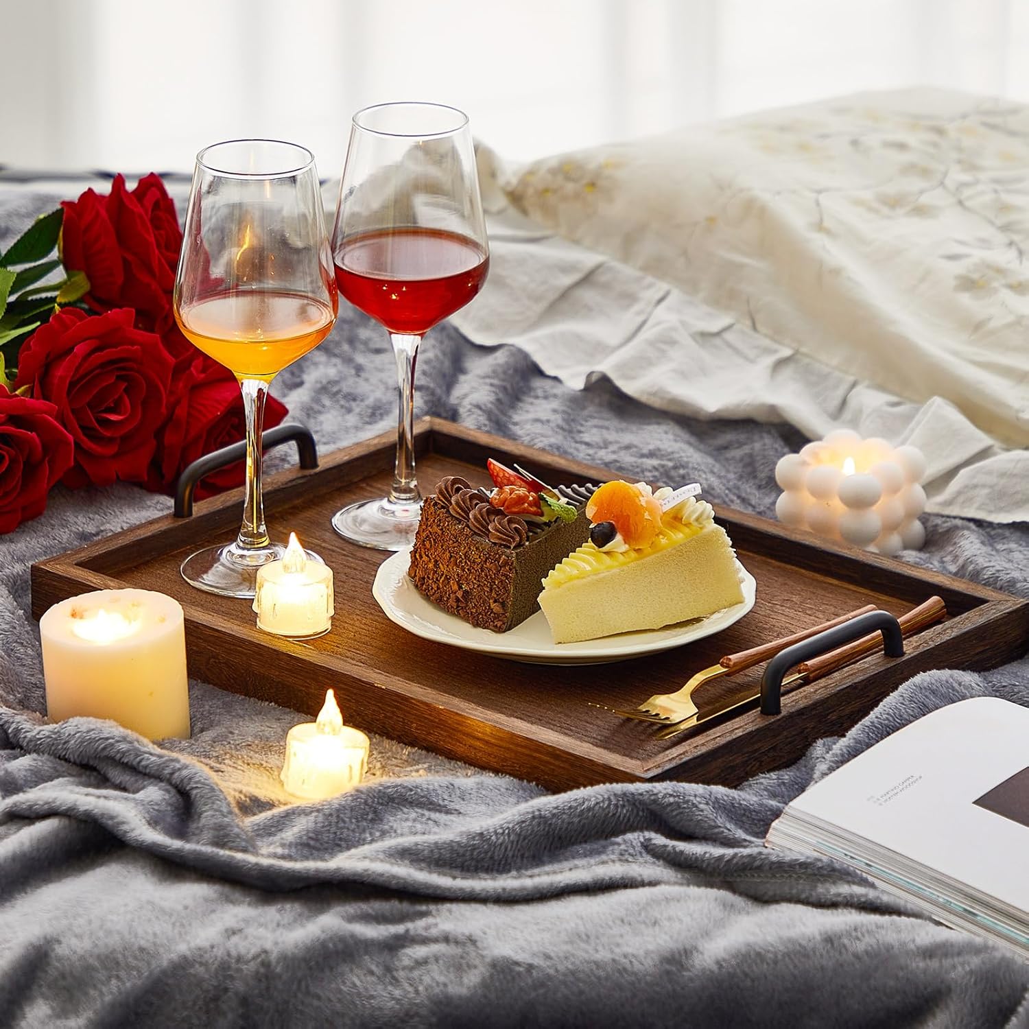 Lallisa 4 Pcs Large Wooden Serving Trays Decorative 15.75 x 11.81 x 2.36 Inch Ottomantray Rustic with Handle for Banquet Party Rectangular Lap Tray for Breakfast Coffee Table Picnic Bed Eating