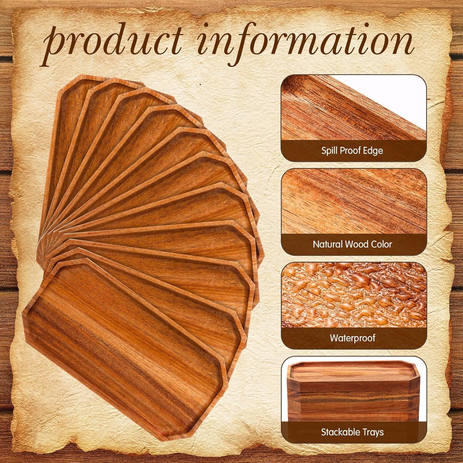 - 12 Wooden Trays: you will receive 12 pieces of rectangular octagonal wooden serving platter, the size is approx. 10 x 5 inch/ 25 x 12.5 cm, which can hold desserts, bread, coffee and more, suitable for cafes and other dining occasions; Note: natural wood is applied; The color of each tray is slightly different, but it does not affect the use