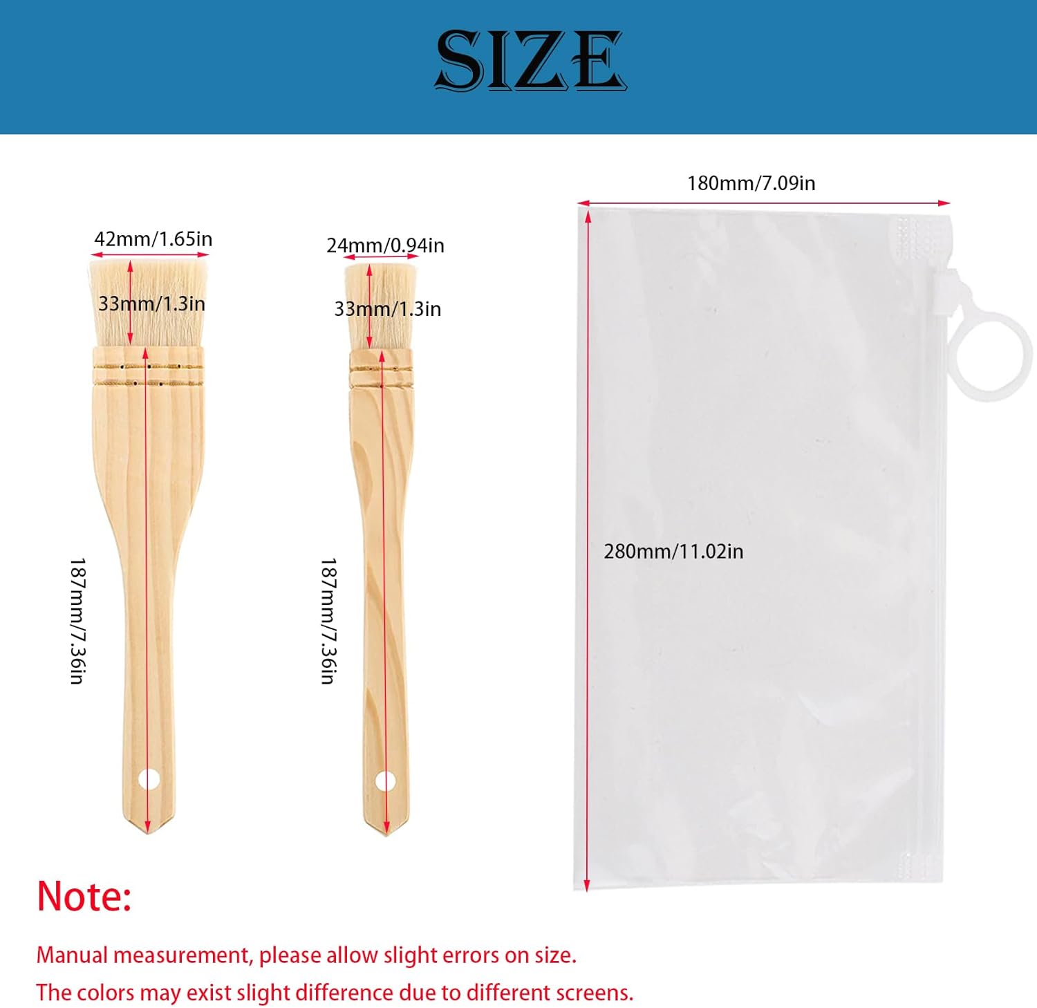 - [Material] The brushes are made of natural bristles and wood handle materials, easy to clean and not easy to shed bristles. The bristles are firm enough to hold whatever coating you are using, such as butter, egg white, heavy syrups, etc, but soft enough not to tear soft dough, i.e. pie dough, puff pastry, etc.