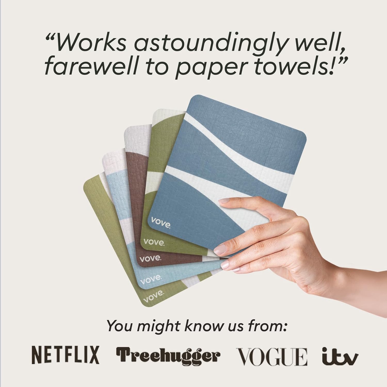 - THE VOVE DIFFERENCE: Experience eco-conscious cleaning with our designer print Swedish dishcloths. Packaged in FSC-certified recycled kraft material, combining style with sustainability. Perfect for anyone looking to reduce their environmental impact while maintaining a beautiful, clean home.