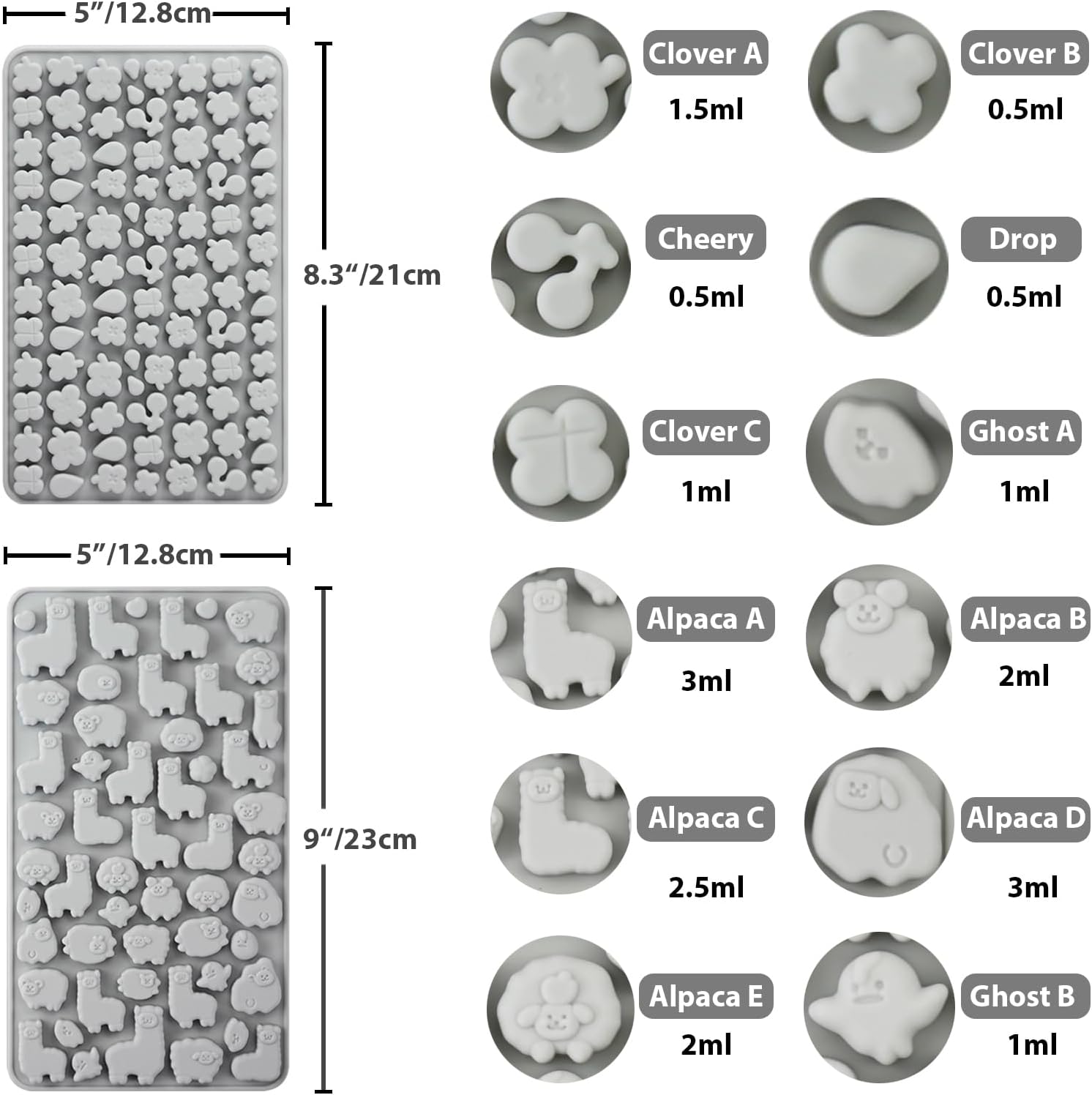 Animals & Flowers Silicone Candy molds, Non-Stick Gummy Bear Chocolate Gelatin Tray with 2 Droppers Creates 260 Alpaca, Clover, Animals, Rainbow & Cloud, Pack of 4
