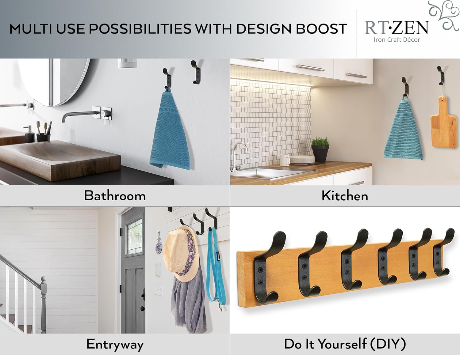 - EXCLUSIVE LIFETIME PEACE OF MIND WROUGHT IRON WALL HOOKS - DIY Decorative 2 Peg Organizer Wall Mounted Coat Hooks, Heavy Duty, Waterproof, Sturdy & Strong 3 Pack Wall Coat Rack with Hooks for Home or Office