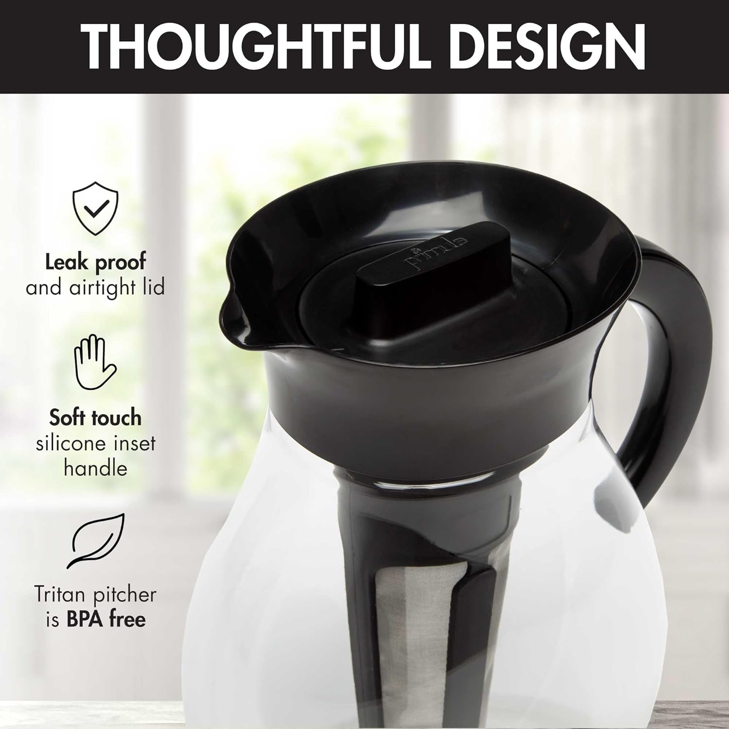 Primula The Big Iced Tea Maker and Infuser, Plastic Beverage Pitcher with Leak Proof, Airtight Lid, Fine Mesh Reusable Filter, Made without BPA, Dishwasher Safe, Black