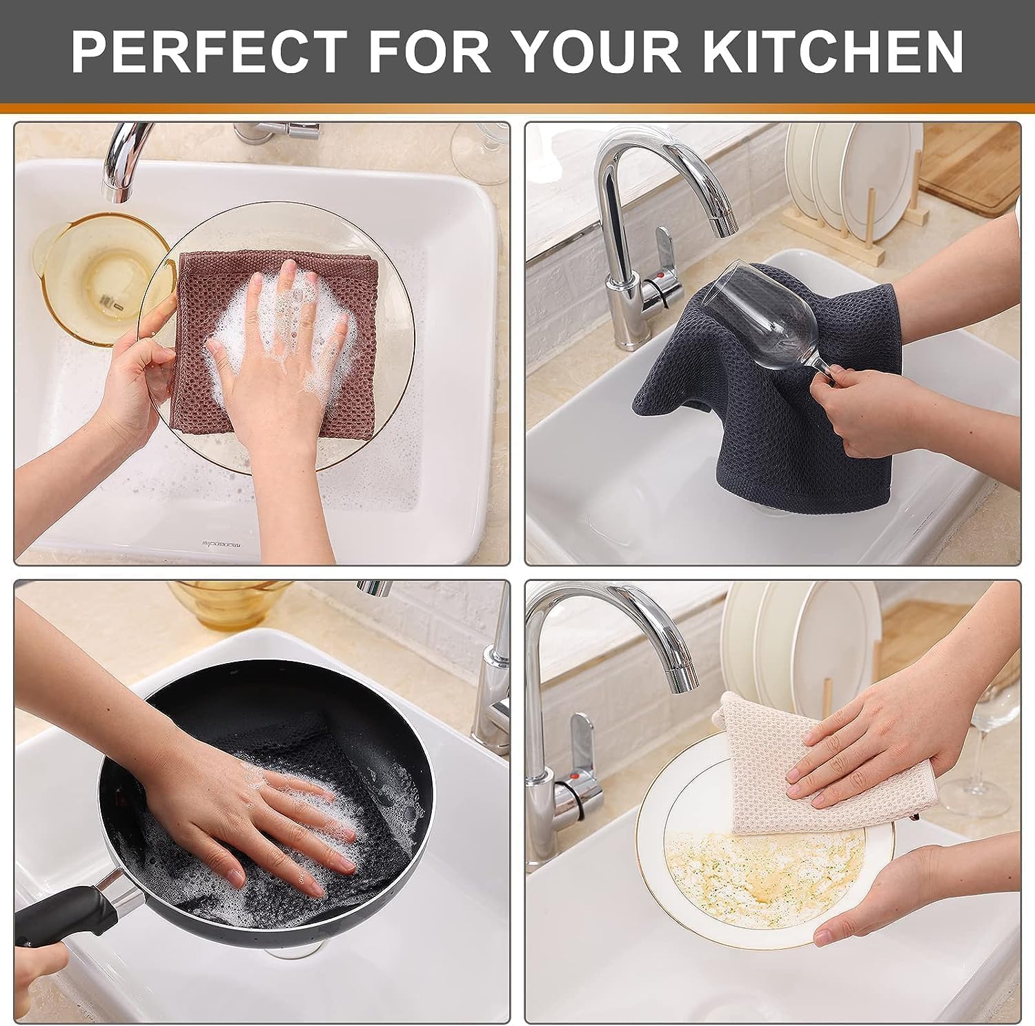 - ✔ MULTI-PURPOSE USE: These kitchen washcloths are widely used and durability for any kitchen cleaning needs. Suitable for washing dishes, wiping countertops, drying hands and so on