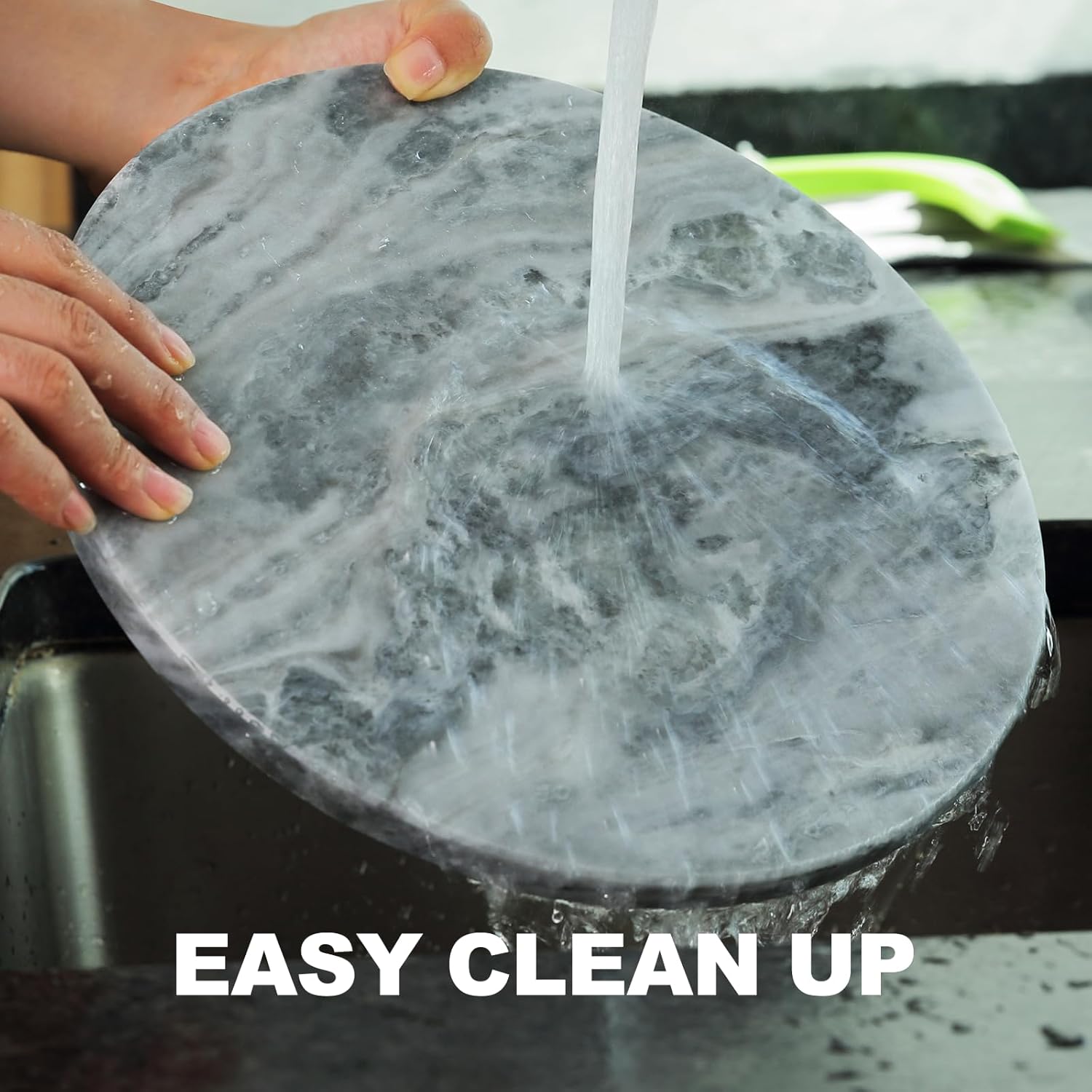 - KITCHEN ESSENTIAL: The unique marble cutting board serves as a highlight in your kitchen. Exquisite marble patterns and natural material elevate your kitchen into a stylish culinary space. While its non-slip feet securely hold the board in place during prep, helping to guard against injury, its convenient non-stick surface allows for the easy rolling of dough, pastries, and fondant with a minimal amount of flour. It's even great for chocolate tempering and serving cheese!