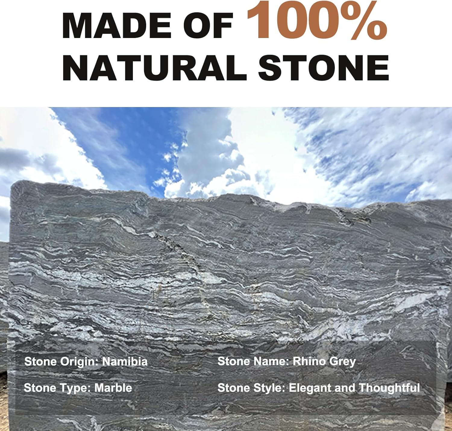 - AFRICAN- RHINO GREY: Originating from Africa, its light gray texture like ink painting, its charm sometimes dynamic, sometimes elegant, as if a lyrical poet pen on the expression of the love of his homeland mountains, printed with the long history of Brazil's roots. Ink impression marble is like a passionate poem, a stone stirs up thousands of waves, injecting a deep cultural heritage and artistic flavor into the space