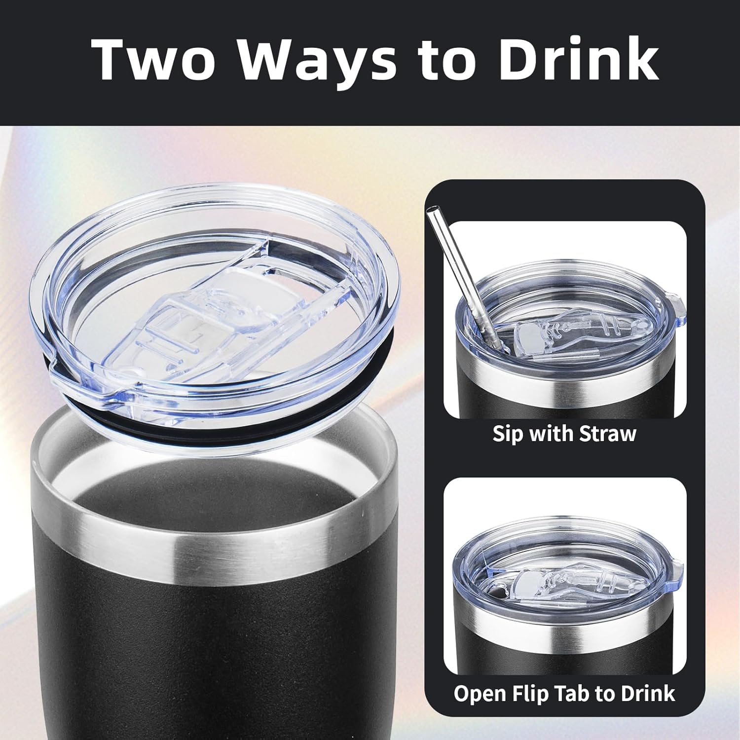 • 🥤【Packing List】: 20oz insulated coffee tumbler with leak-proof lid, two stainless steel straws (one curved and one straight), straw cleaning brush is a great addition (HAND WASH RECOMMENDED). Best for home, office, camping, vacation, sports, travel, etc