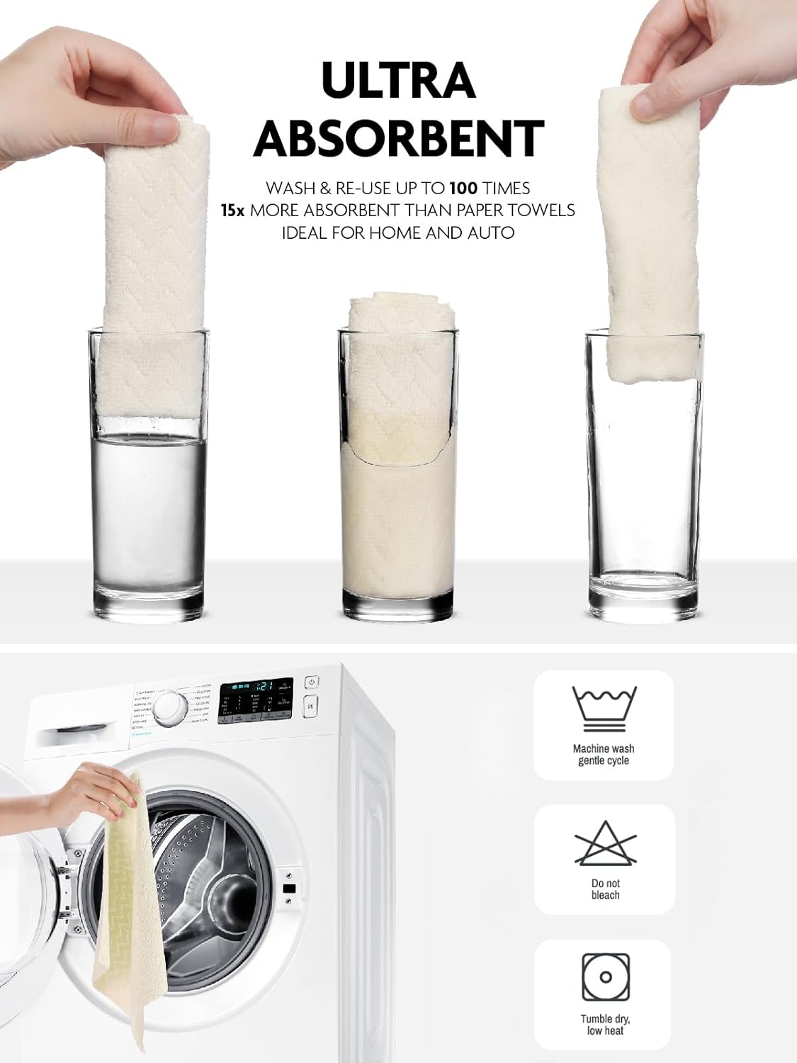 - [Alternative to Paper Towels] Designed for durability, these reusable cloths feature sturdy 200gsm microfiber for exceptional cleaning performance