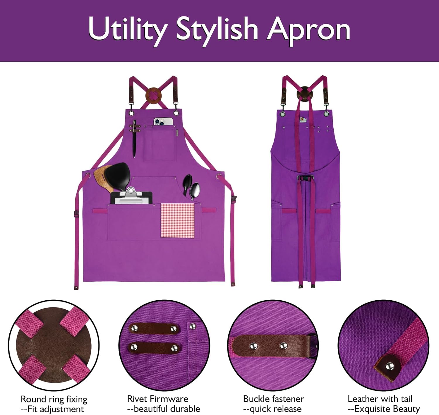 - Expert Craftsmanship: This apron is made of 12-ounce cotton canvas, metal grommets, rivets, and leather. The pockets are reinforced with metal rivets at the corners, with double stitching and bottom folding edges to increase strength and durability
