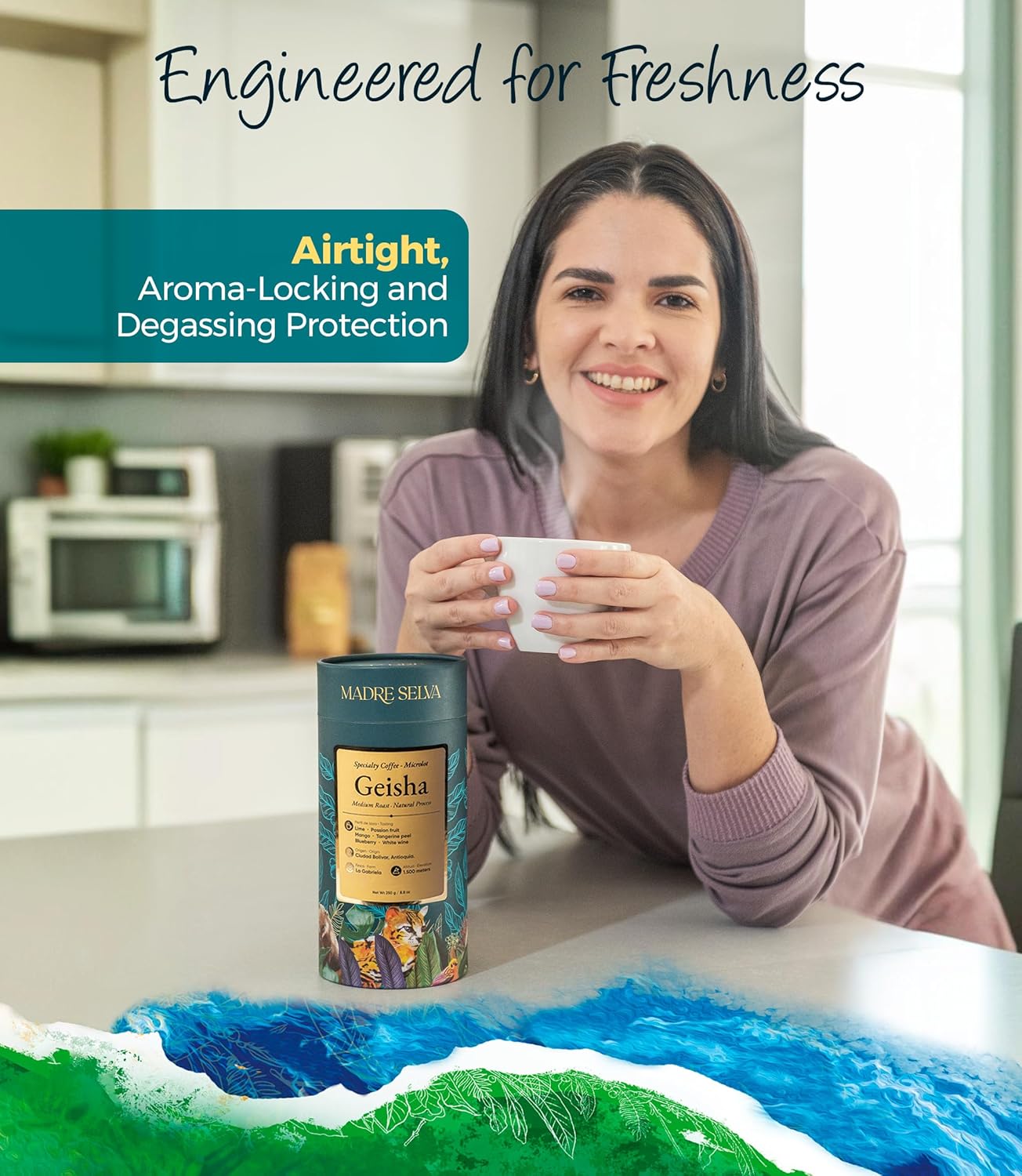 - 📦 SEALED PACKAGING FOR LASTING FRESHNESS AND FULL BODIED COFFEE FLAVOR: Presented in a premium compostable tube with protective layers, this Colombian Geisha coffee is a refined choice for coffee gifts for coffee lovers, birthdays, or collectors. With silky texture, aromatic richness and crafted origin, it’s a beautiful way to show appreciation. Loved by espresso enthusiasts, gourmet coffee fans, and arabica coffee lovers, this single origin coffee offers elegance, depth, and emotional connection in every brew.