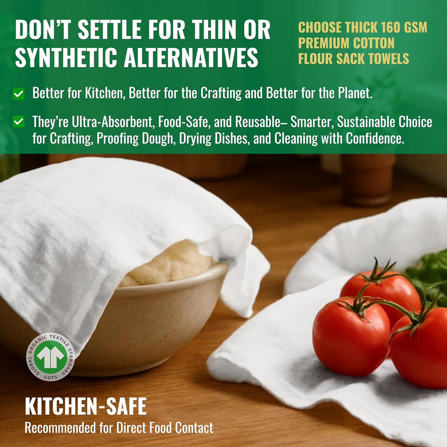 - ✅ 100% Premium Cotton – Safe for Food & Family Made from chemical-free, unbleached premium cotton, our towels are lint-free, safe for food prep, baby care, and sustainable living. Great for those searching for "premium dish towels" and "eco-friendly flour sack towels."