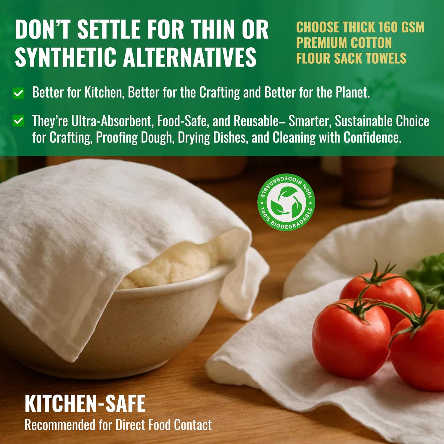 - ✅ 100% Premium Cotton – Safe for Food & Family Made from chemical-free, unbleached premium cotton, our towels are lint-free, safe for food prep, baby care, and sustainable living. Great for those searching for "premium dish towels" and "eco-friendly flour sack towels."