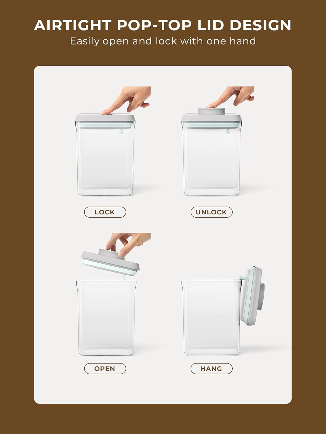 - Safe and Smart Design: Made from BPA-free, food-grade AS material that meets FDA standards, these airtight cereal containers are safe for both adults and children. The on-lid attaching hook design allows you to hang the lid on the edge of the container for easy access.