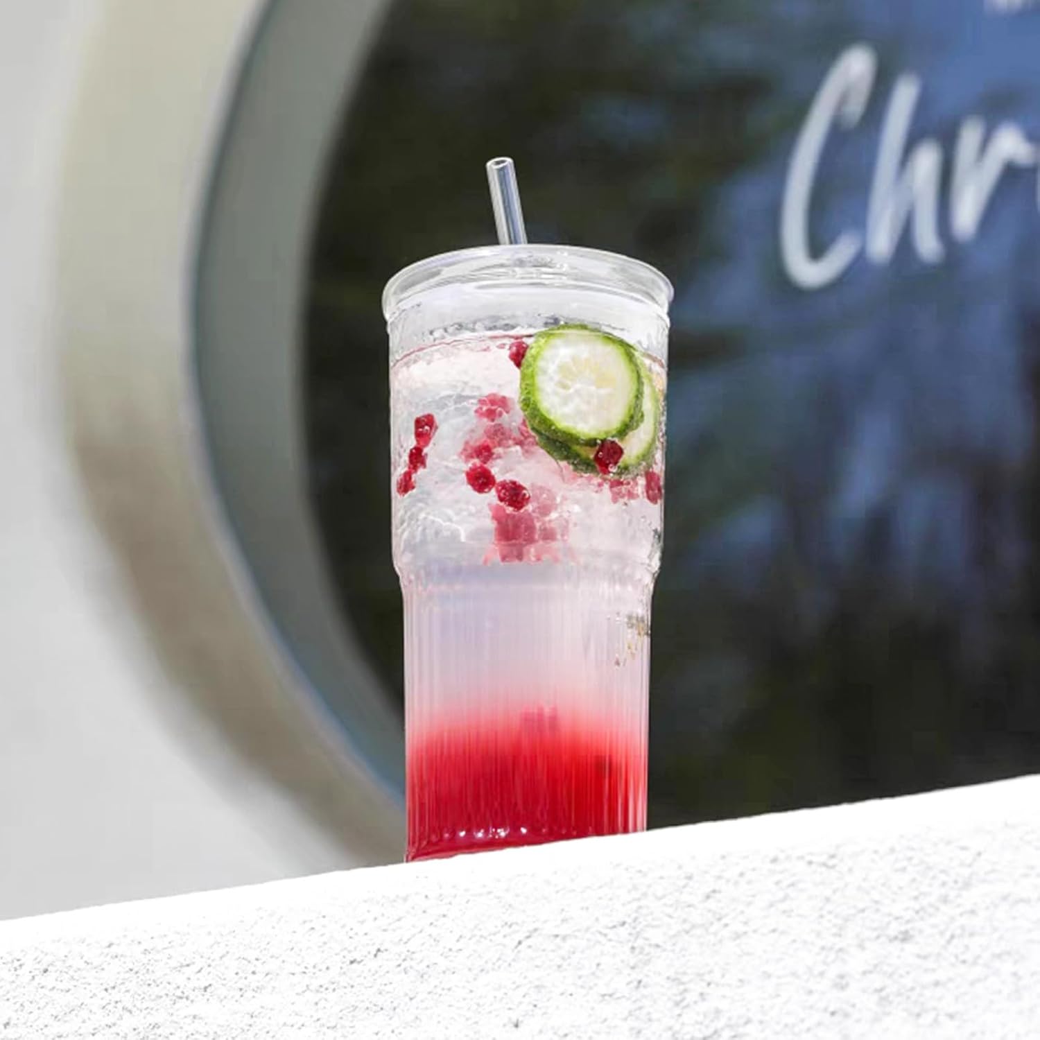 Glass Tumbler with Straw and Lid, 20 OZ Clear Iced Coffee Glasses Cups for Ice Water, Juice, Tea, Milk, Smoothie and Cold or Hot Drinks, Set of 2