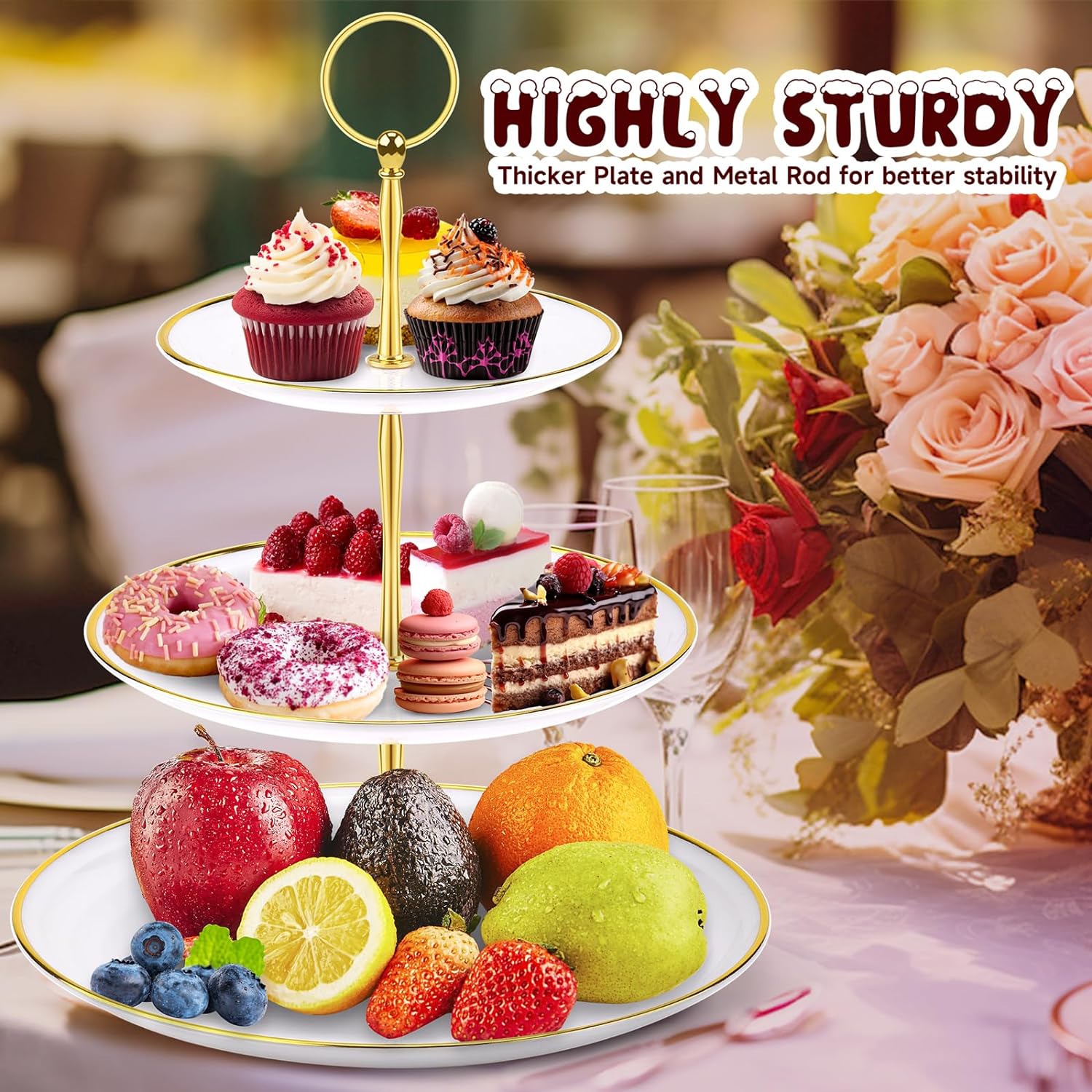 - Versatile Party Supplies: Whether you're hosting a themed birthday party, a delightful tea party, a charming baby shower, or a glamorous wedding, this tiered tray stand is perfect centerpiece for any dessert table; Your guests will be delighted as they indulge in the scrumptious treats beautifully displayed on this dessert stand