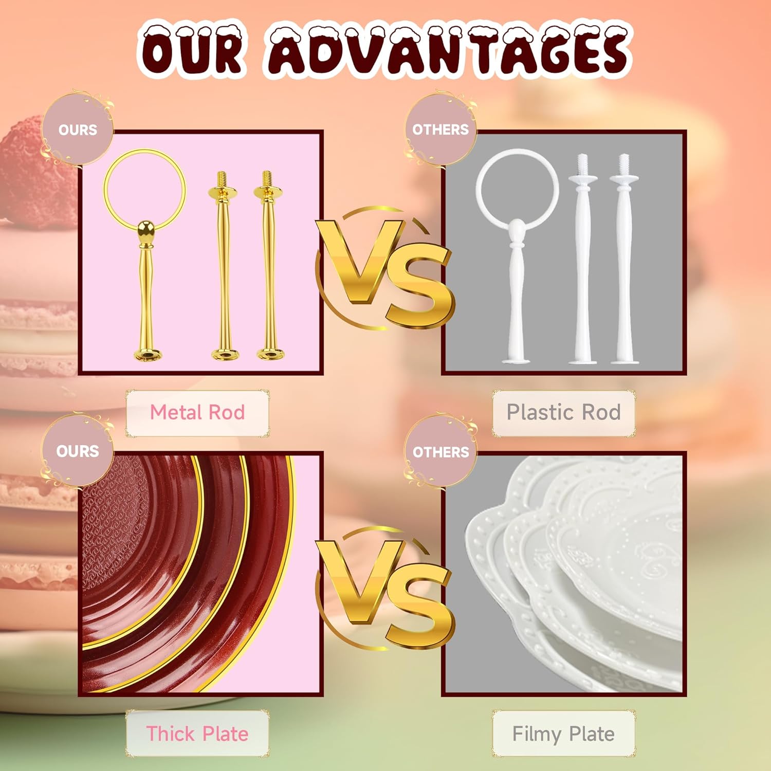 - [Versatile Party Supplies]: Whether you're hosting a themed birthday party, a delightful tea party, a charming baby shower, or a glamorous wedding, this tiered tray stand is perfect centerpiece for any dessert table. Your guests will be delighted as they indulge in the scrumptious treats beautifully displayed on this dessert stand
