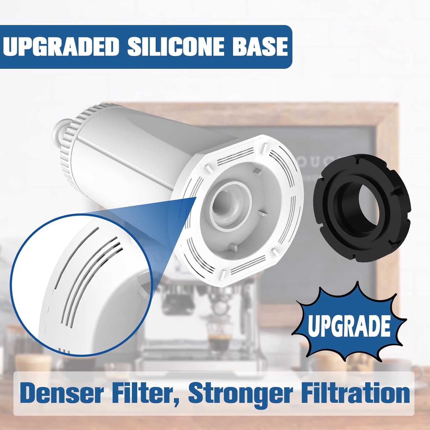 - π‘ππͺ π¦π¨π£ππ₯ ππ₯πππ§ - Enjoy a better coffee experience with Funmit espresso machine water filter for breville. Our espresso machine filter adopts advanced microfiltration technology using coconut activated carbon adsorption and ion to reduce chlorine, heavy metals, and other harmful contaminants while retaining minerals and fluorides to protect your coffee machine. Plus, we added a non-toxic and harmless silicone pad and a finer filter to the base for better performance