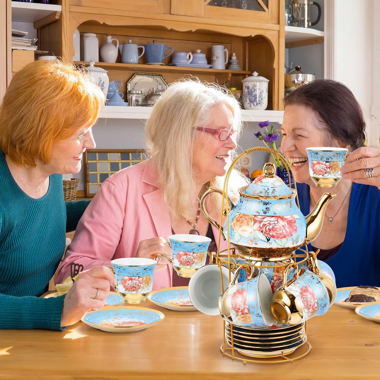 - Quality Porcelain Material: the tea party set for adults is mainly made of quality porcelain materials, which ensures that it is durable and long lasting to use safely; The European style design with exquisite patterns and shining gold trim are exquisite and elegant, making it a nice addition to any home decoration