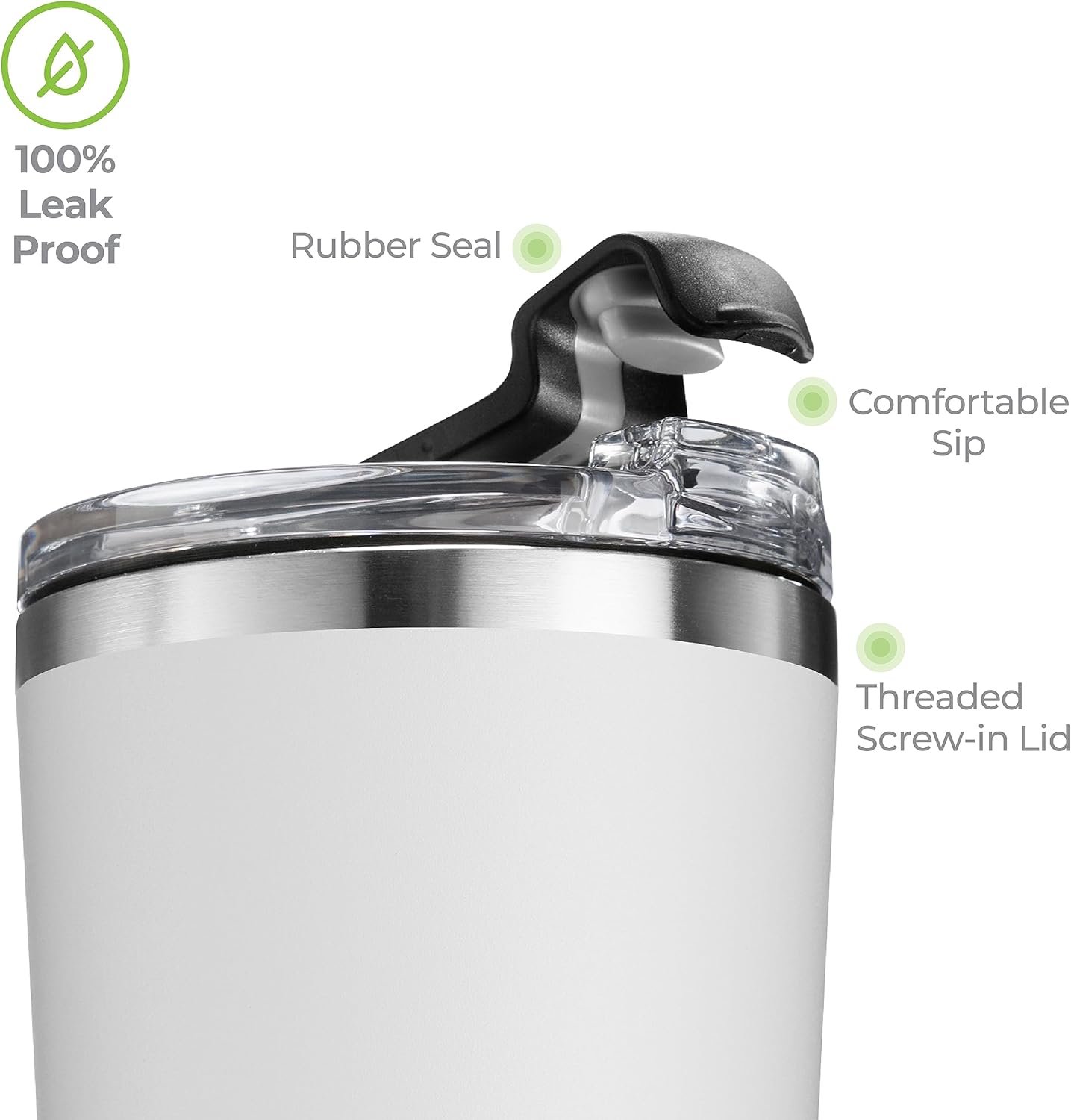 - FLIP TOP LEAK PROOF LID - Our stainless steel tumblers come with a flip top lid and comfortable sip, The flip top lid comes with rubber seal that keeps it totally leak proof to prevent leaks, and drips, and keeps your coffee/tea etc… hot as can be.