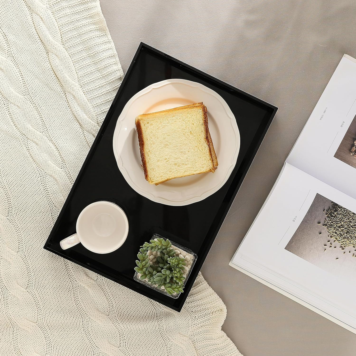 Glossy Black Sturdy Acrylic Serving Tray with Handles-12x20Inch-Serving Coffee,Appetizer,Breakfast,Butler-Kitchen Countertop Tray-Makeup Drawer Organizer-Vanity Table,Ottoman Tray-Decorative
