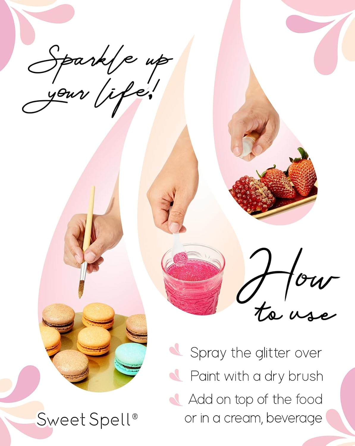 - Sparkling Drink Sensation: Elevate your drinks and cocktails with a mesmerizing glittery hurricane effect. Watch as your beverages shimmer and shine with our Sweet Spell drink glitter.